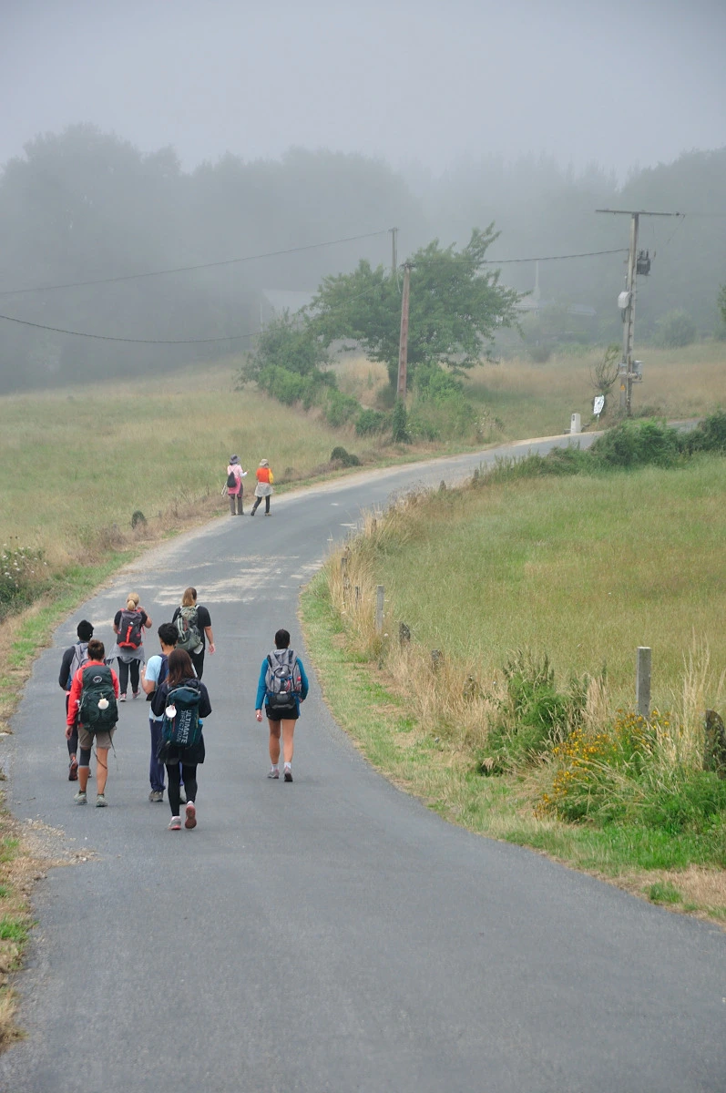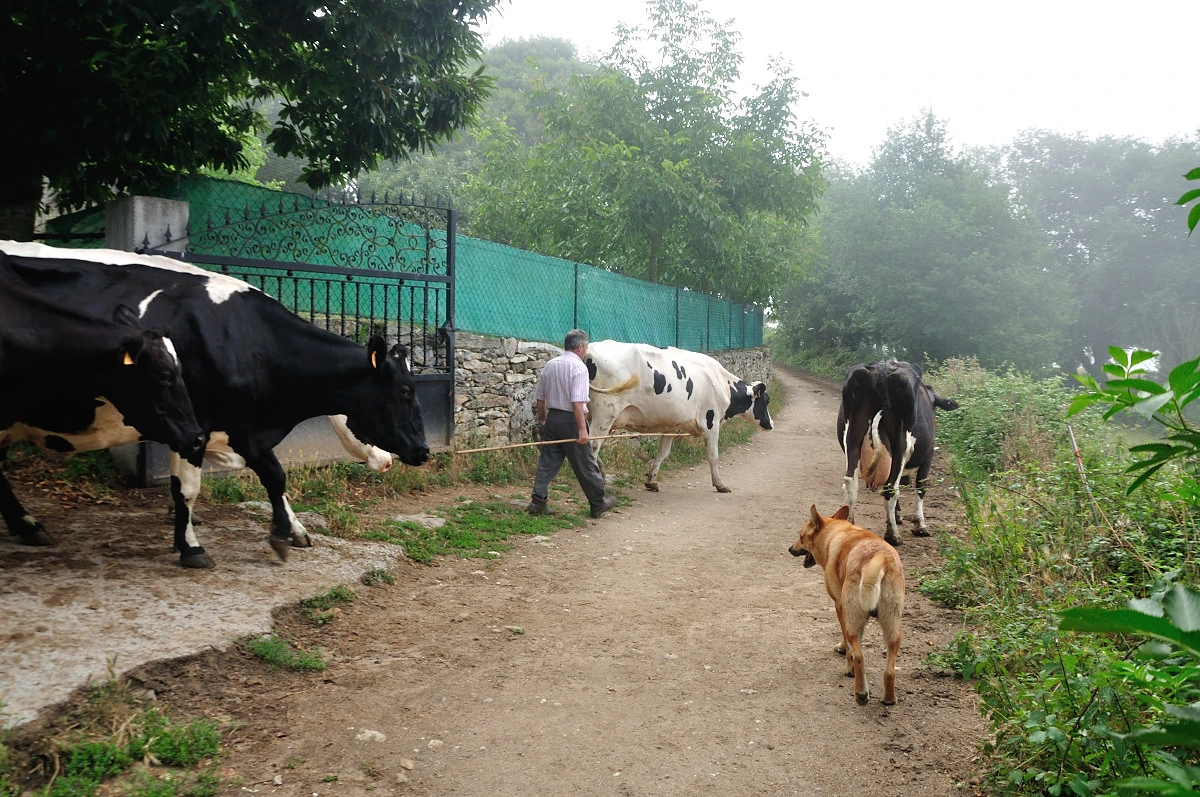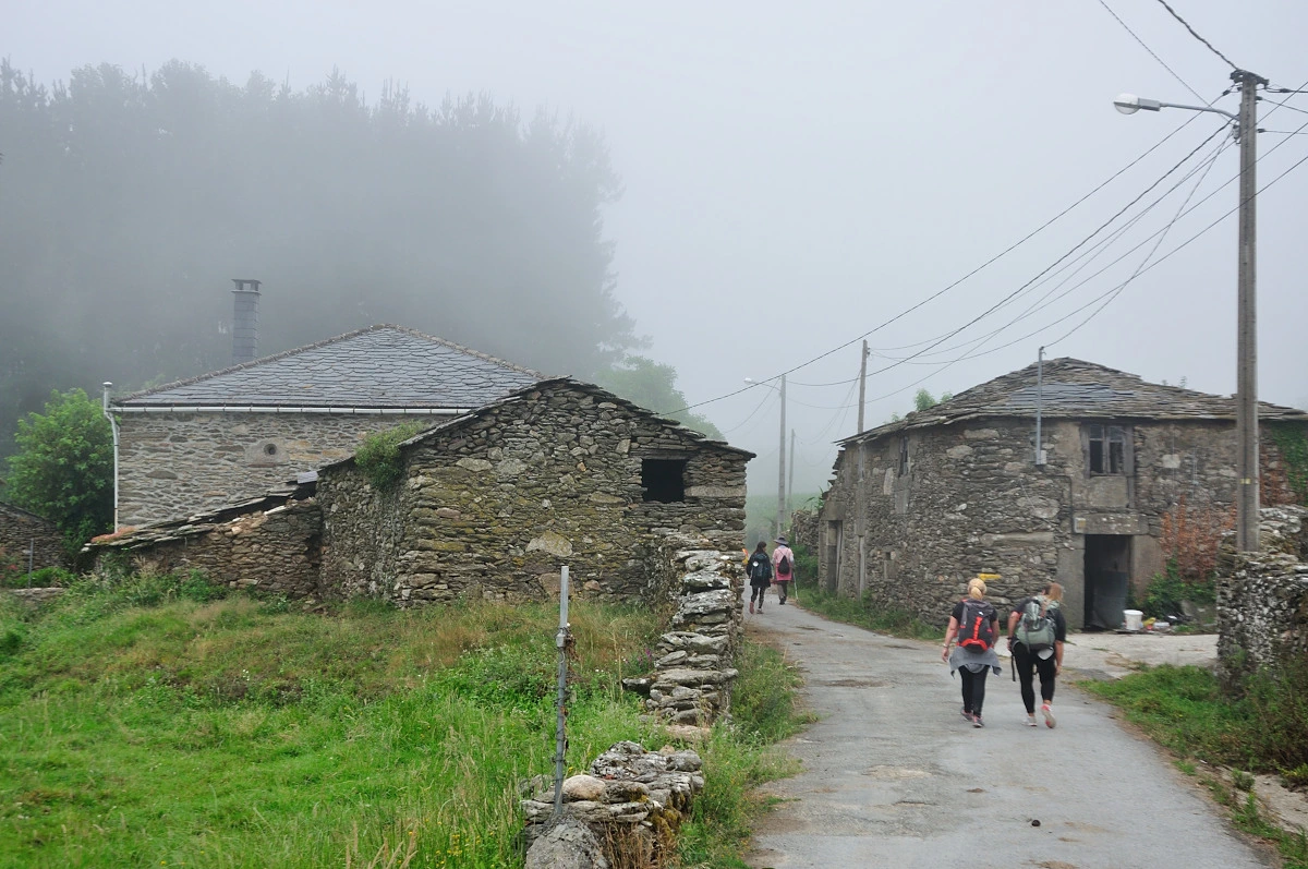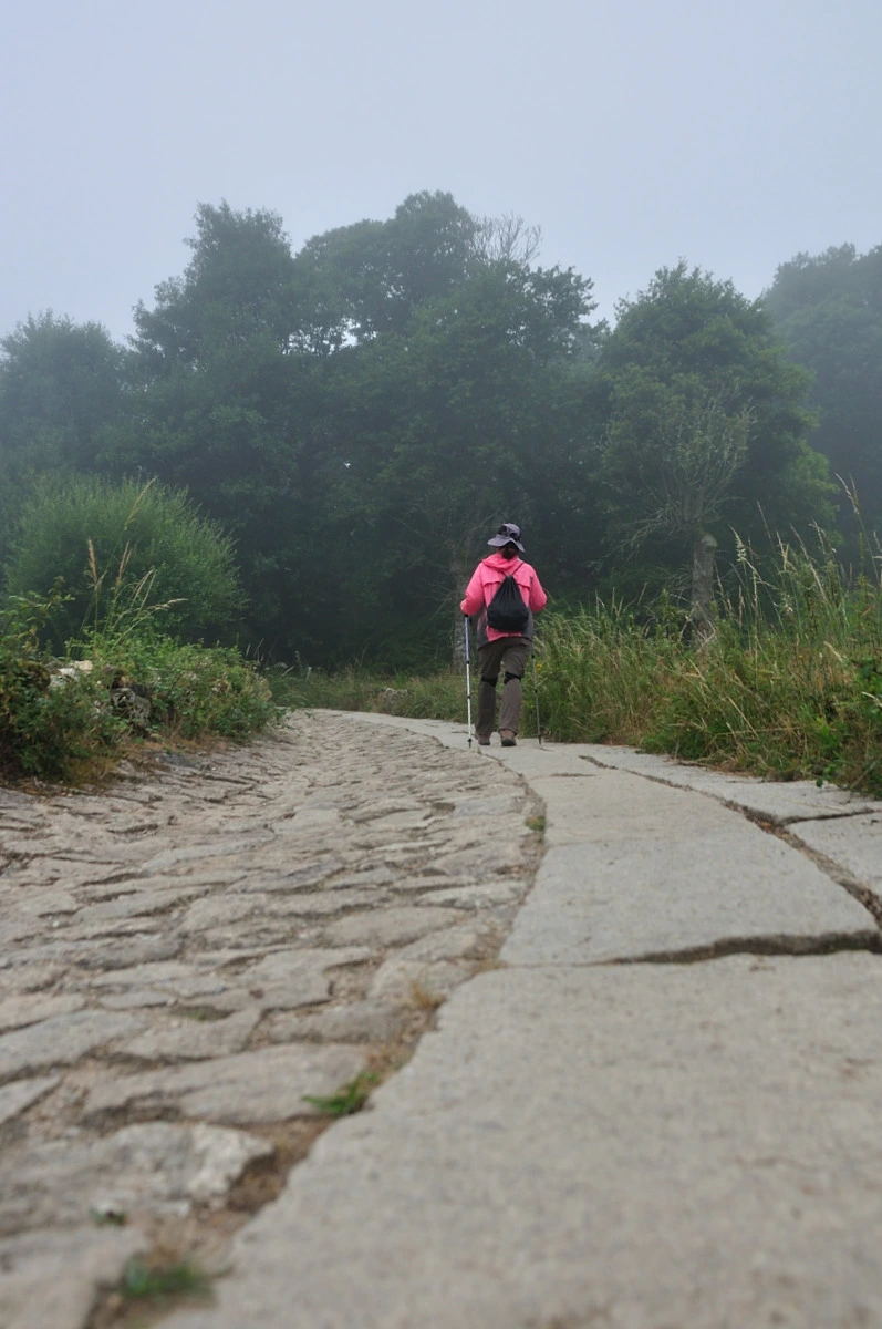 새벽에 걷는 풍경도 사뭇 다르다. 탁트인 풍경은 더 이상 볼 수 없다. 시선을 어느뱡향으로 돌려도 막혀있다. 숲이 되었던, 산지가 되었던 시선이 멀리까지 가지 못한다. 게다가 새벽에는 안개가 많이 낀다. 을씨년 스러워 7월 이지만 덥다라는 느낌을 가질 수 없다. 오히려 아르수아를 지나 산티아고에 다다를수록 더위를 느꼈다. 불켜진 농가의 풍경도 다시 익숙해 졌다.