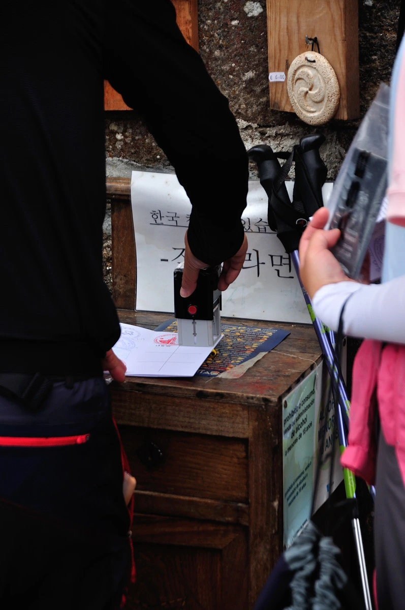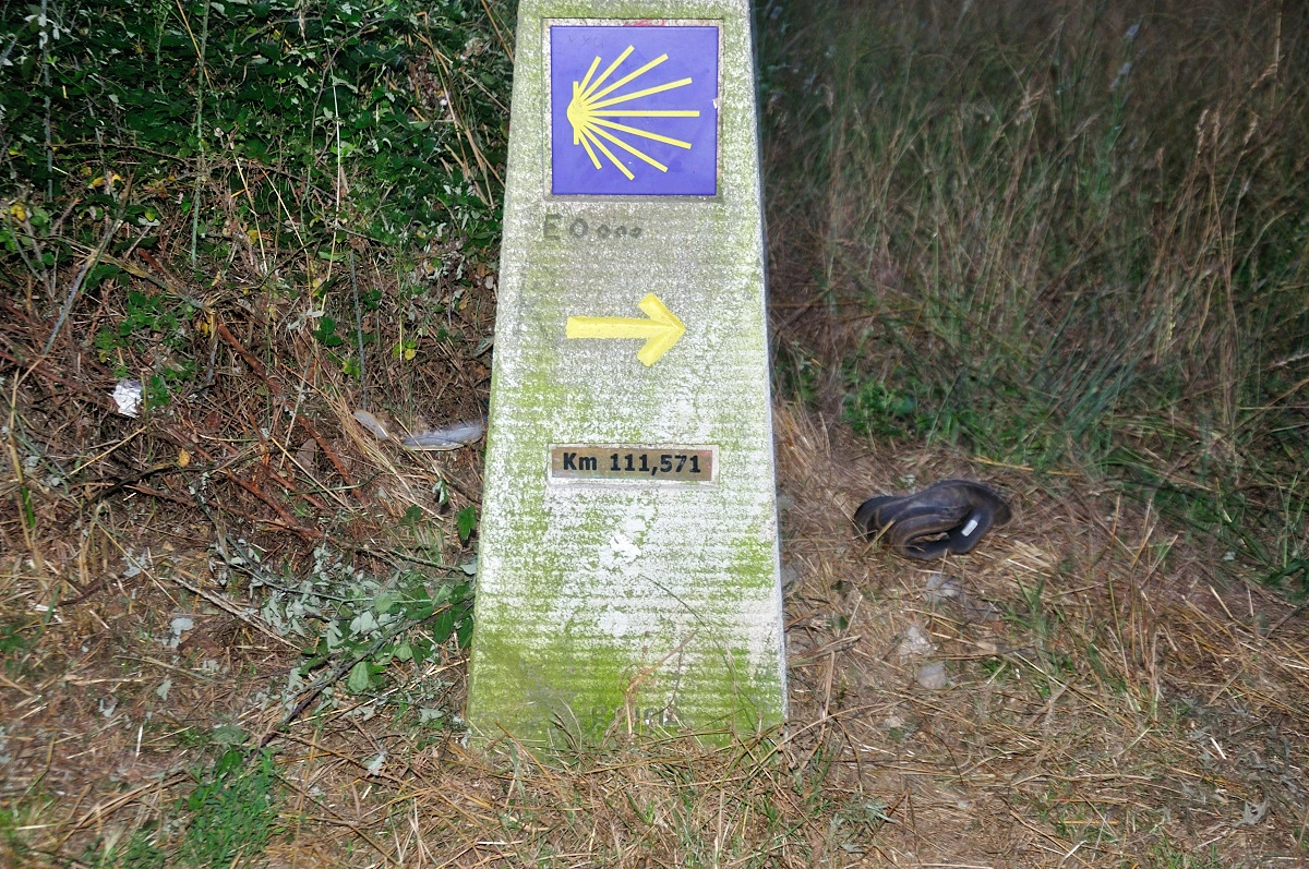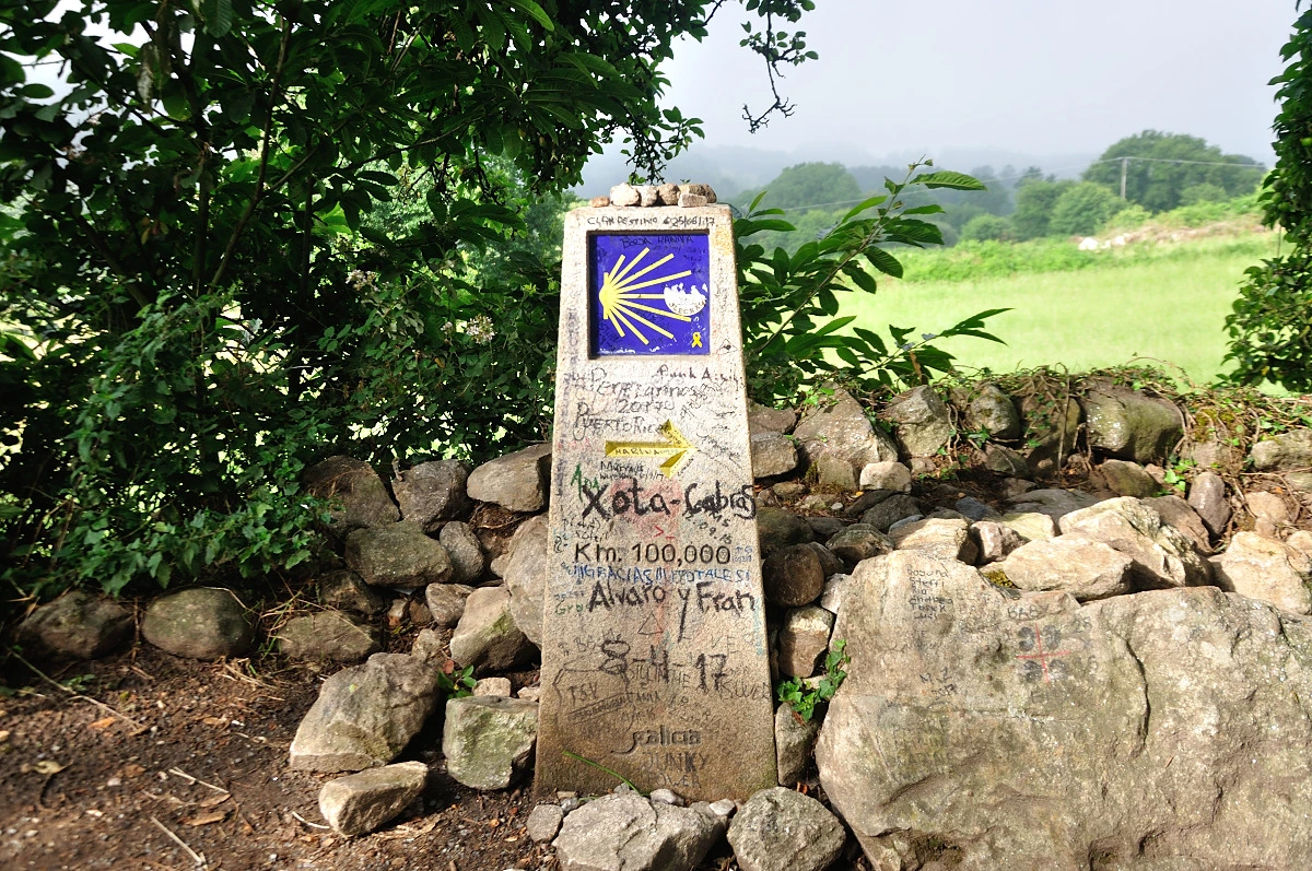 아래 사진이 진정한 100km 남은 거리 표시석이다. 숫자가 새겨져 있어 확인이 가능하다. 여기서부터는 무조건 걸어서 가야 한다.