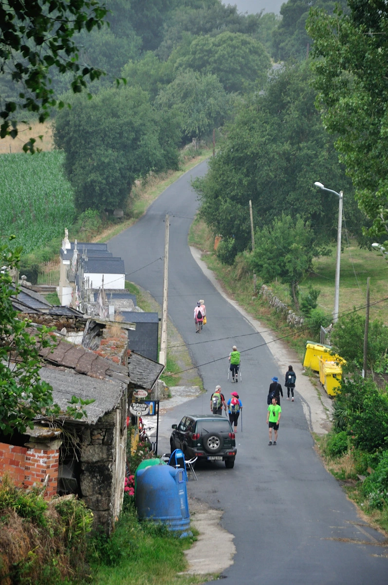 사리아부터는 훨씬 더 많은 사람들이 순례길에 모여있다. 어린 학생들이 선생님과 함께 걷는 모습도 보인다. 게다가 순례길을 관광으로 찾아온 사람들, 짧게 걷기위해 사리아부터 시작하는 사람들이 어울려 어느때보다 순례길에는 사람으로 넘쳐났다. 앞뒤로 점점히 보이는 것은 모두 순례자였다. 즐겁게 떠들며 걷는 사람부터 심각하 걷는사람, 자연에 감사하듯 포옹하며 걷는 사람, 스탬프 찍어주는 곳을 빠지지 않고 세요 받으며 걷는 사람 등등 다양하다. 나름에 이유를 가지고 찾아 왔겠지만 하는 행동도 모두 다르다. 오로지 한국사람들은 길에만 열중하고 걷기 바쁠 뿐이다. 잠깐에 여유를 가지고 둘러보면 볼거리가 많다. 다양한 가리비를 파는곳도, 그곳에 한국라면을 파는것도 알게 되는데 그냥 지나쳐 버린다. 그리고 뒤돌아 생각하면 순례길에서 남는거라고는 799km 걸었다는 기록 뿐이다.