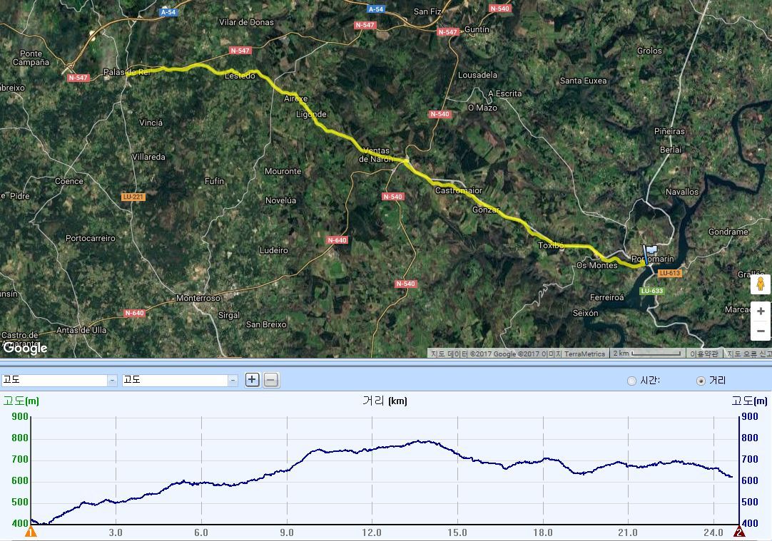 주요지점 Portomarín ~ Gonzar ~ Castromaior ~ Ligonde ~ Palas de Rei