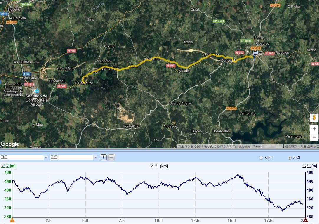 주요지점 Arzúa ~ A curiscada ~ A Calle ~ O Pedrouzo