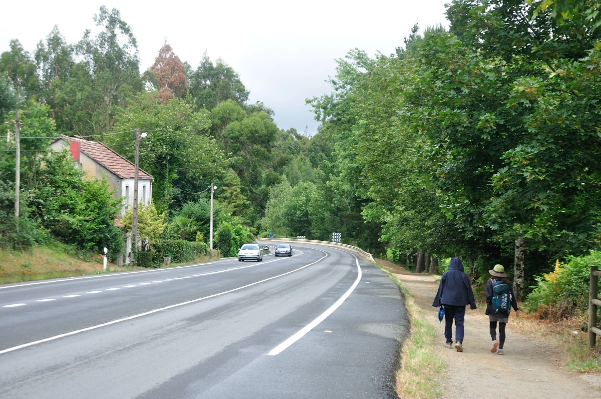 O Pedrozo를 들어서는 방법은 도로를 따라 마을 초입에 다다르는 길과 거치지 않고 가로질러 가는 우회길이 존재한다. 예전에는 숲길을 따라 걷다가 O Pedrozo에 다다랐던 것으로 기억했는데 잘못된 기억이였다. 도로를 따라 갔어야 했고, 이틑날 산티아고를 향해 걸었던 구간에서 익숙한 숲길을 만나고 나서야 기억의 오류를 알았다. O Pedrozo에서 쉬려면 도로따라 마을에 들어서야 한다.