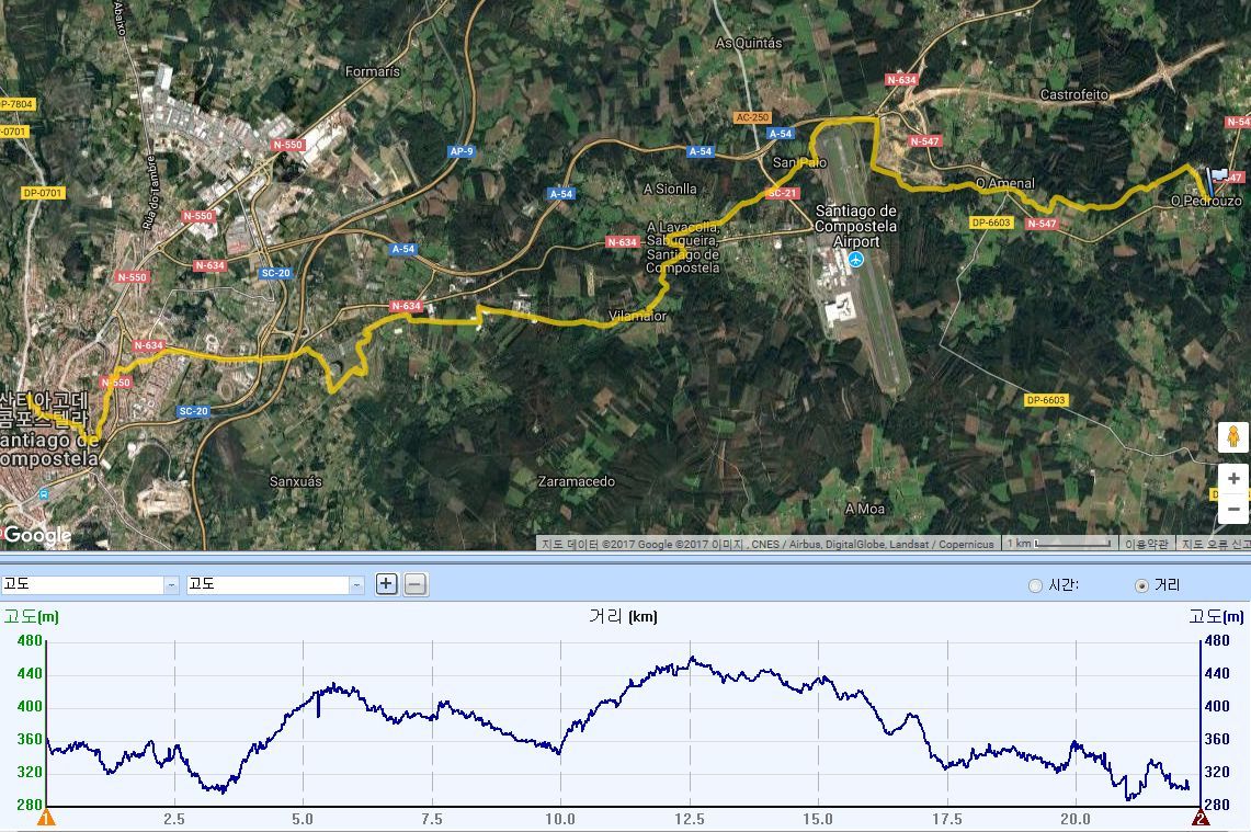 주요지점 O Pedrouzo ~ Santiago de Compostela
