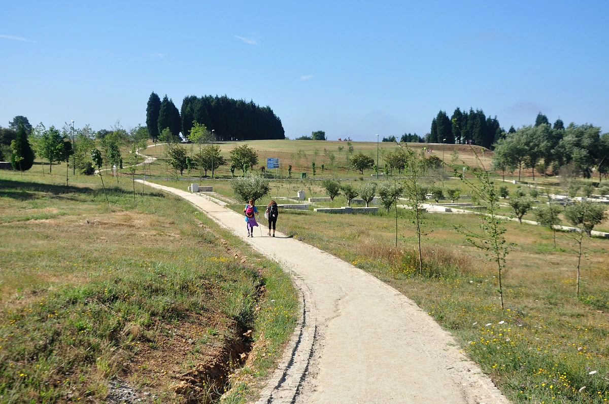Monte do gozo에 다다랐다. 지난번에는 기념탑(Monumento de Monte do Gozo)만 보고 내려갔다. 영화에서 보아왔던 순례자상은 찾지도 못해 아쉬웠었다. 이번에는 순례자상(Monumento ao Peregrino)을 찾아 나섰다. 기념탑이 있는 곳 맞은편에 순례자상이 있다. 거기까지 약 1km 정도 걸어가야 한다.