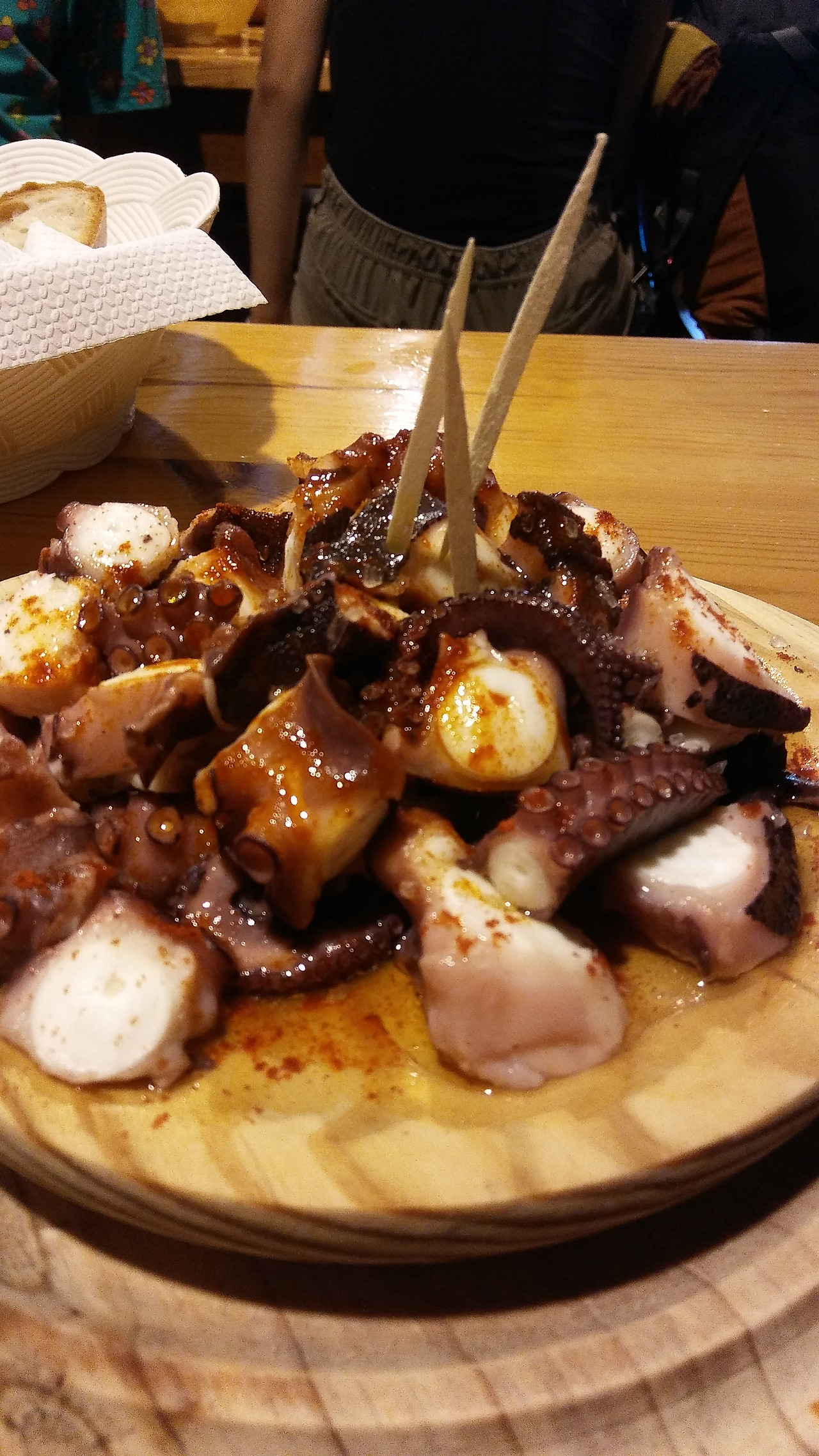 스페인 지방의 특화된 요리 중 하나가 문어요리이다. 문어를 삶아서 시즈닝을 더한채 찍어먹는 음식이다. 한국인이라면 초고추장이 생각나겠지만 나름 소금와 양념이 버무려진 문어요리도 맛있다. 이곳에서는 와인보다는 시드라라는 사과향의 탄산주와 함께 한다고 한다. Melide의 문어요리(Pulpo)집은 꽤 유명한 곳이라 지나가던 순례자들이 들르는 곳이다. 하지만 아침 11시는 되어야 오픈하기 때문에 일찍 출발하는 사람들은 맛보지 못하고 지날 수 있다. 다른 곳에서 맛보던 문어보다 훨씬 쫄깃하고 부드럽다.