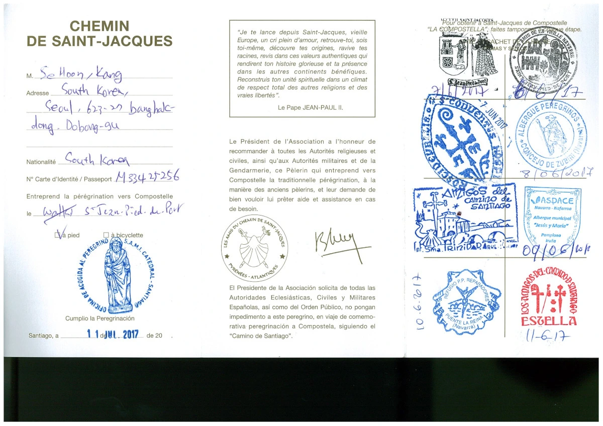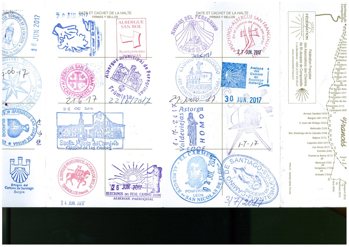 이것이 없다면 비싼 호텔이나 민박집에서 머물러야 한다. 그리고 순례자여권을 가지고 알베르게에 머물면 스탬프도장을 찍어주는데, 이 스탬프가 순례길을 어떻게 거쳐왔는지를 유추할 수 있으며, 산티아고데콤포스텔라에 도착했을 때 인증서 발급에 있어 중요한 증거물(?)로 이용된다. 그래서 순례자여권을 소중히 여기고 스탬프를 받아야한다고 얘기를 해준다. 물론 알베르게 이외에 각 도시에 있는 교회 또는 Bar, 노점상, 전시관 등에서도 스탬프를 받을 수 있다. 이로 인해 모든 사람이 같은 순례자여권을 가지고 있지만 그안에 스탬프는 모두 다를수도 있다.