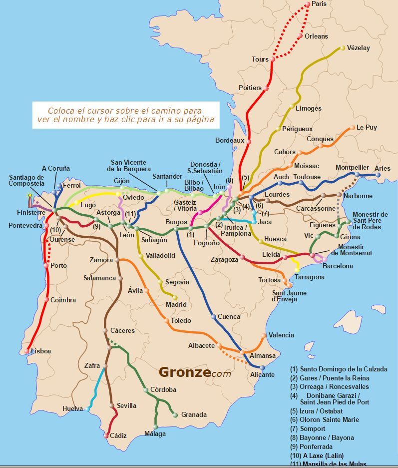 성야고보가 순교한 이후 각지역에서 종교적인 목적으로 순례를 떠나오는 사람들이 줄지어 들어왔고, 프랑스지역에서 시작한 길을 ‘프랑스길’이라 불리우고, 가장 처음으로 순례의 목적으로 오가던 길이 ‘프리미티보길(Camino Primitivo, 초기의 길)이다. 하지만 대중적으로 인기있는 코스는 프랑스 생장 피에드포트에서 시작하여 산티아고데 콤포스텔라까지 이어지는 799Km의 프랑스길 이다.