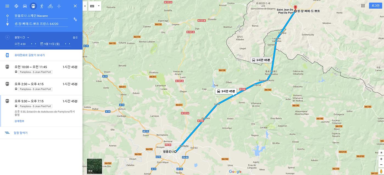 - Pamplona -> Logrono -> Burgos -> Belorado로 이동할 경우