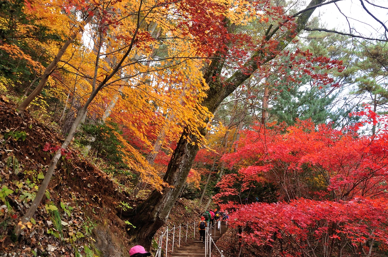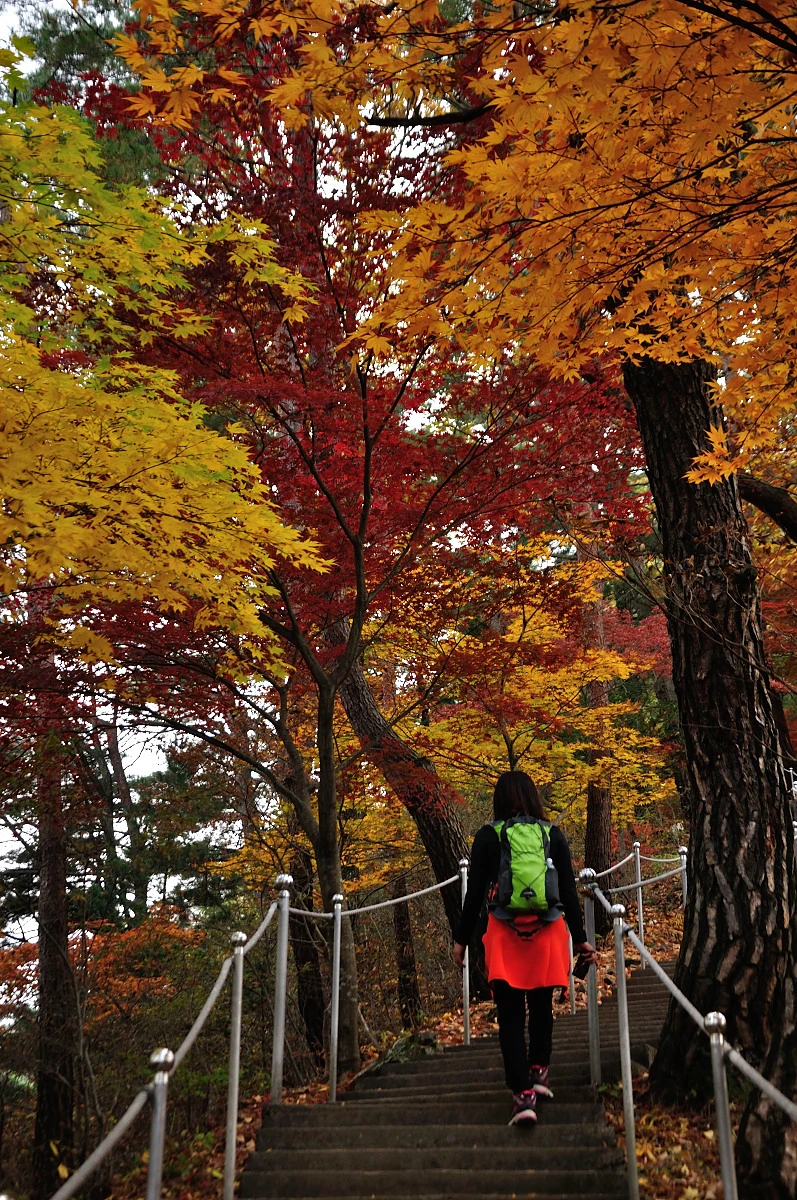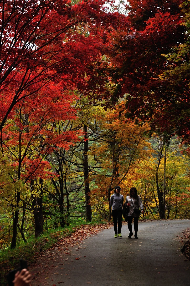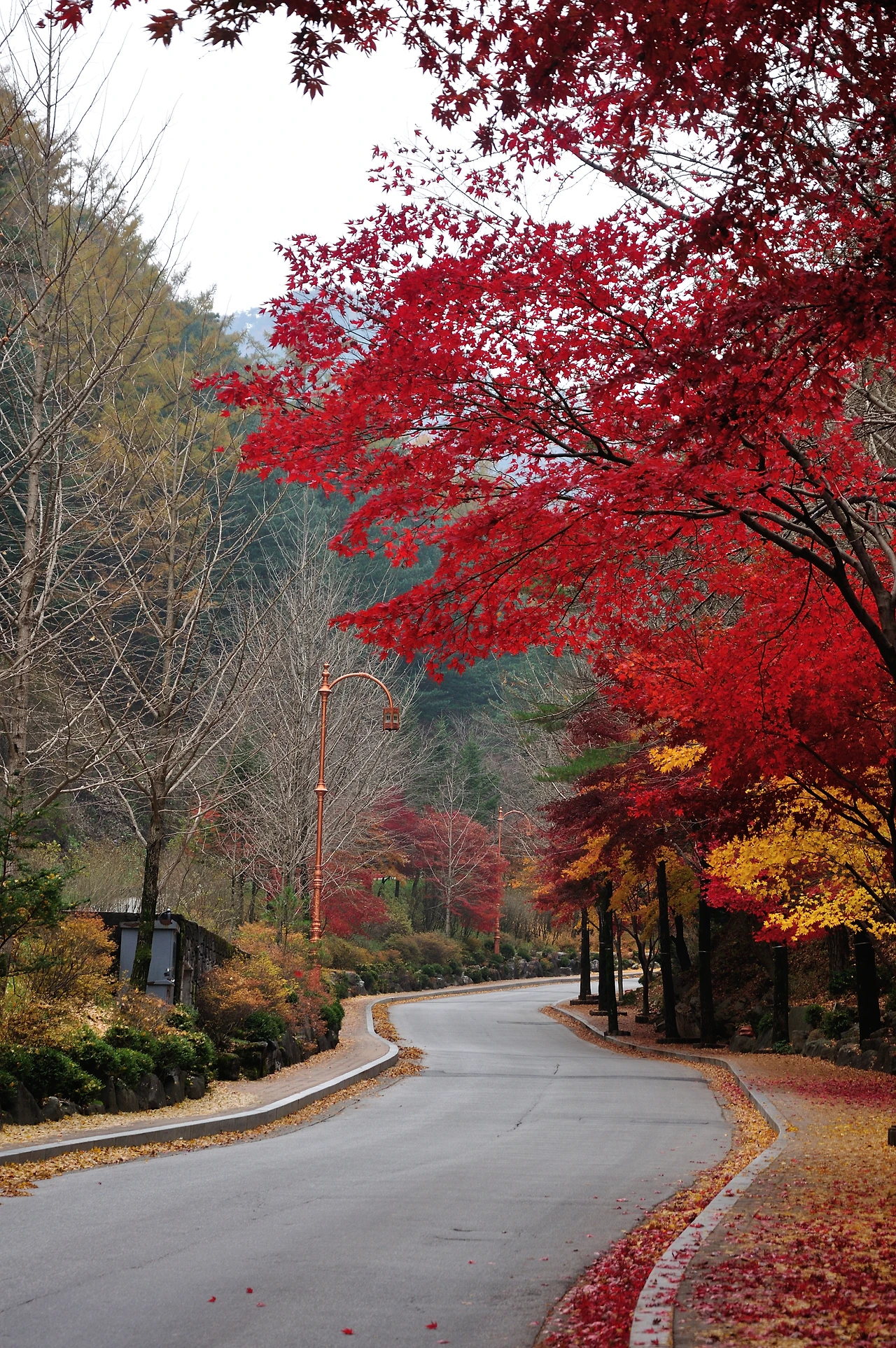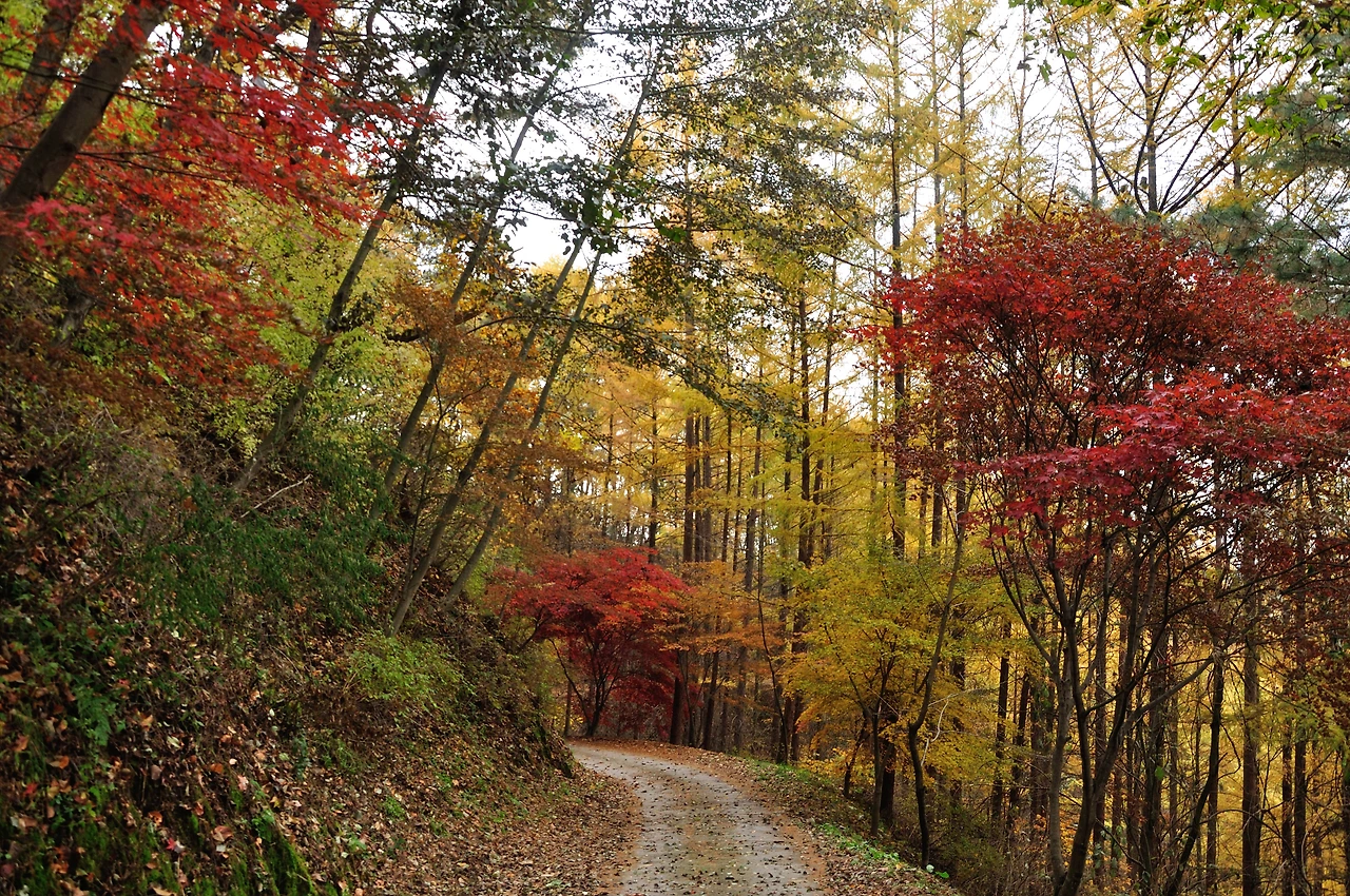 낙엽송 가득한 숲에 노란색이 물들어가는 시절이 제철이다. 거기에 더하여 구인사 은행나무 숲길을 걸어 올라가 붉은색 단풍 가득한 경내까지 둘러보는것은 덤으로 얻는 단풍구경이다.