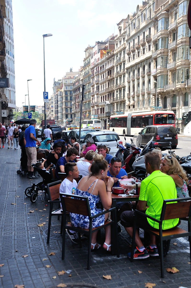 카탈루냐 광장은 바르셀로나의 중심지라고해도 과언이 아닐 듯 싶다. 주요 명소와 쇼핑몰이 근처에 모여 있으며, 버스 또는 지하철을 타고 이동하기도 편한 중심가이다. 그러다 보니 주변에 우리에게 익숙한 KFC나 버거킹 매장도 근처에 있다. 카탈루냐 광장을 가로지르는 람브라스 거리는 도로 사이에 작은 광장처럼 조성되어 있어 작은 악세서리가게나 식당이 줄지어 서있다. 하지만 현지 가이드는 이곳에서 식사하는것을 말린다. 가격대비 음식맛이 떨어지니 찾아가지 말라고 조언한다. 하지만 쇼핑을 즐기려면 이곳과 고딕지구에 들어서면 천국이다. 다양한 가죽제품부터 액세서리 등 쇼핑하는 재미가 무척 쏠쏠한 지역이다. 게다가 가우디투어를 시작하는 구엘주택과 레이알광장이 걸어서 10분 정도 거리에 있다. 광장에도 노점을 하는 사람들이 많은데 대부분 기념품이거나 짝퉁스러운 가방을 판매한다. 그리고 쉽게 이동할 수 있도록 펵쳐진 보자기에 줄이 달려 있고 그 안에 판매 물품을 진열해 놓는다.