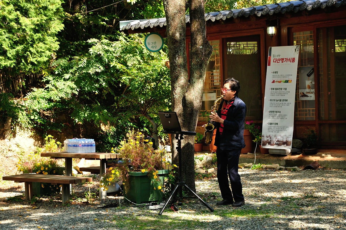 다산초당에 다다르니 익숙한 풍경이 반겨준다. 예전에 수없이 다녔던 뿌릿길과 다산초당... 그 모습만으로도 충분히 반가웠다. 그래서 내가 선택한 강진여행이 훨씬 마음에 들었다. 다산초당부터는 다른 관광객들과 섞여 걷는다. 중간 쉼터에 섹소폰 공연도 진행중이다. 산속에서 듣는 음악은 꽤가 마음을 현하게 해준다. 여기서 아예 자리를 펴고 쉬어가는 사람들도 제법 보였다. 나또한 잠깐 벤치에 걸터앉아 쉬어가기로 했다. 너무 쉬지 않고 여기까지 와버렸다.