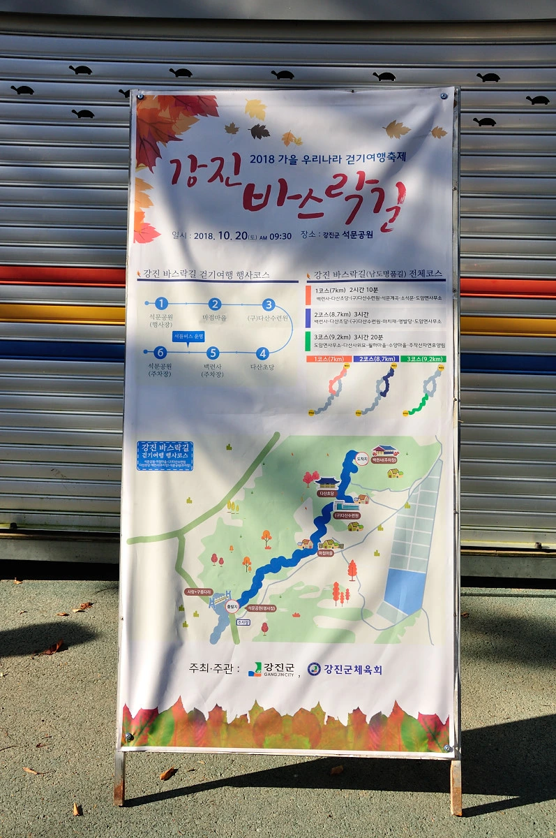 이번에 찾아가 곳은 강진군에서 개최한 "강진 바스락길 걷기여행축제"이다. 강진을 선택한 이유는 둘레길붐이 한창이던 시기에 가장 많이 찾아갔던 남도의 도시 중 하나였고, 한동안 찾아가지 못해 향수병이 일듯이 강진의 부드러운 땅을 밟아보고 싶었기 때문이다.