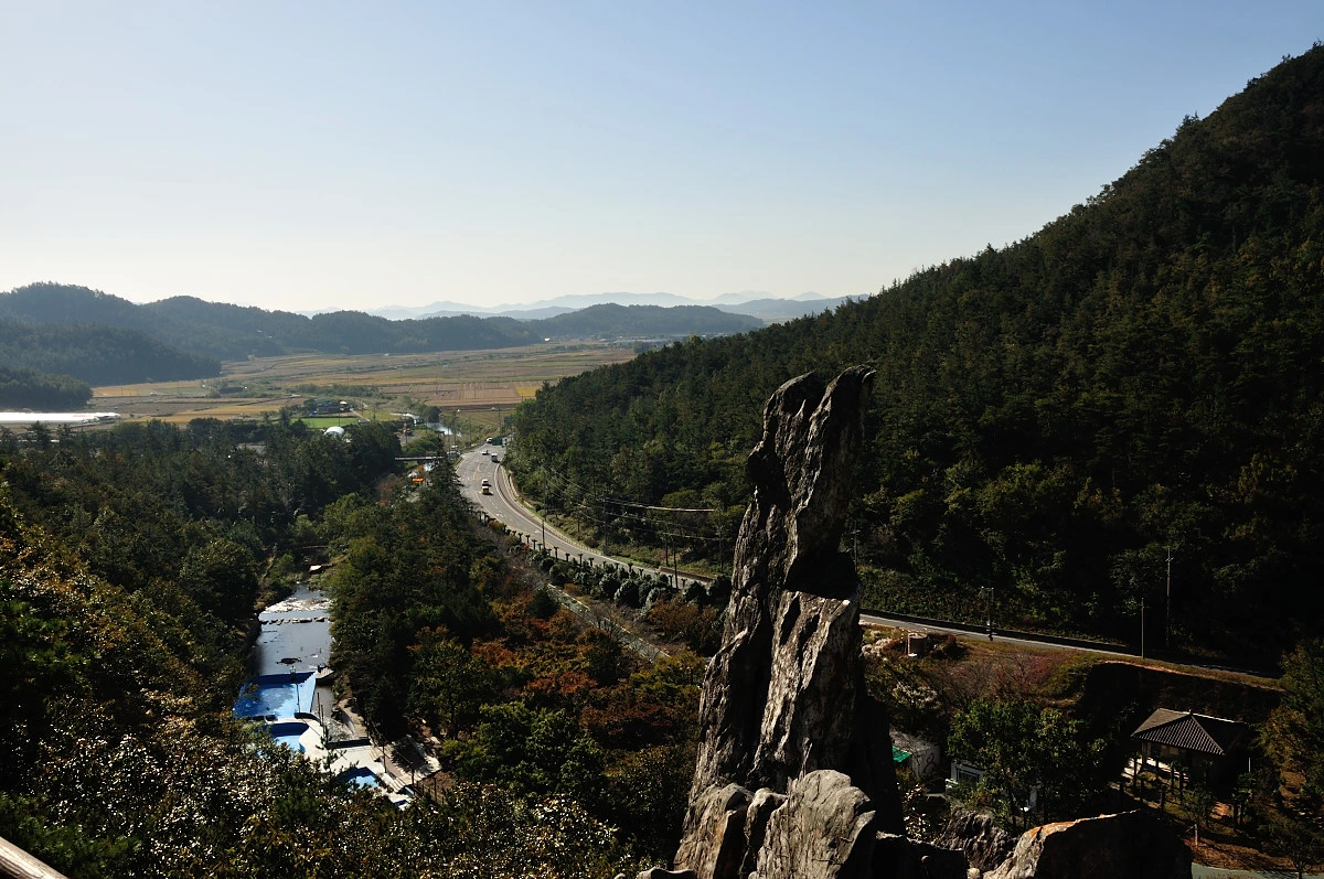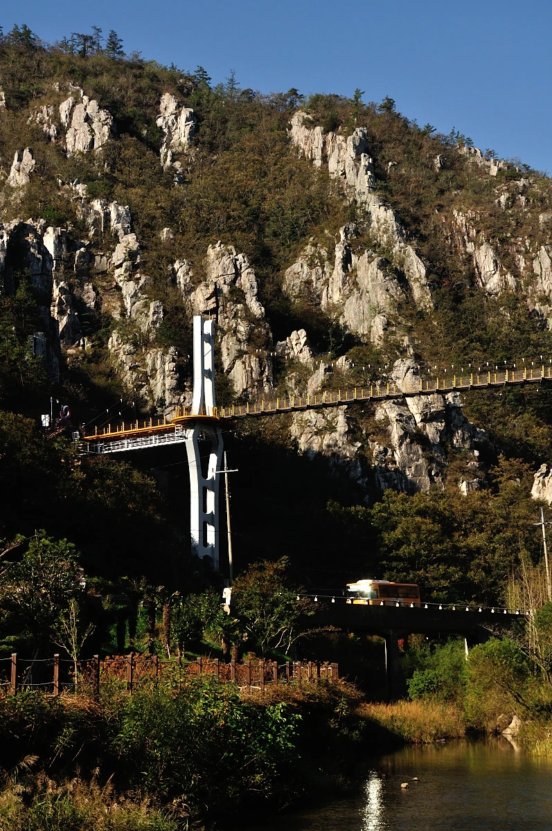 익숙한 지명인 석문공원에 이른 아침에 다다르니 낯선 풍경이 더해졌다. 도로위에 출렁다리가 새로 생겼다. 그리고 해남가기전에 위치한 주작산휴양림과 연결되는 둘레길의 중간 코스라고도 한다. 막상 석문정까지 올라가 출렁다리를 가려고 했으나 석문정부터는 바위틈 사다리를 밟고 올라서야 해서 카메라들고 가기에는 어정쩡하여 석문정에서 풍경을 내려다 보는것으로 만족해야했다.