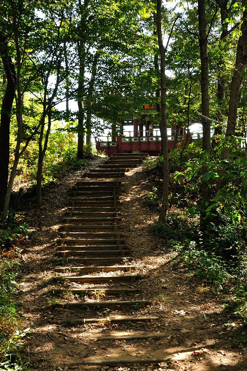 어느새 저멀리 백련사가 보였다. 예전에 봤을때는 공사중이였는데 지금은 공사 천막은 없어졌고 온전한 백련사의 모습이다. 하지만 처음보는 축대때문에 예전처럼 포근했던 백련사가 아닌 사람이 다가서는것을 꺼려하는 백련사의 모습으로 바뀌었다. 그래도 굴하지 않고 올라간 백련사 대웅보전의 모습은 그대로이다. 여기저기 둘러보는 사이에 걷기축제 참가자의 모습은 보이지 않았다. 벌써 다 내려갔는가 보다. 좀더 여유롭게 둘러보면 좋을텐데 말이다. 걷는것만 중요한것이 아닌데, 여기에 왜 이런길이 생겼는지 이유를 안다면 훨씬 감성이 풍부해질텐데 말이다. 옛날에 다산과 혜장선사가 만났던 길, 그 전에 추사와 초의선사가 차를 마시기위해 만났던 길이라는 것만 알았어도....