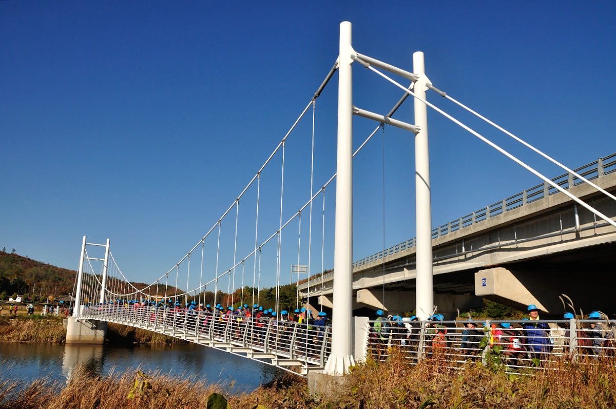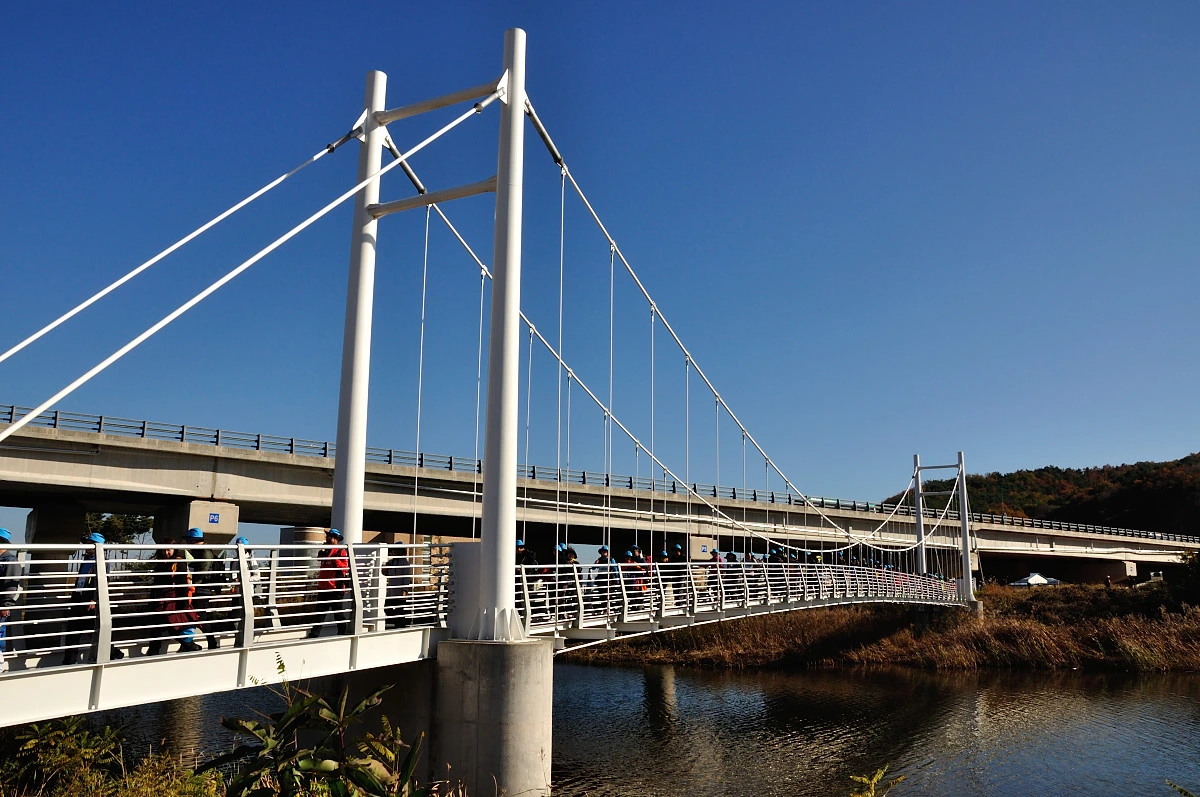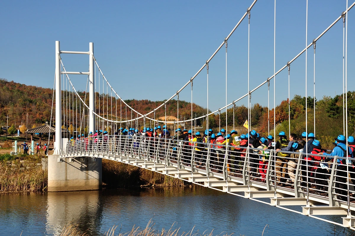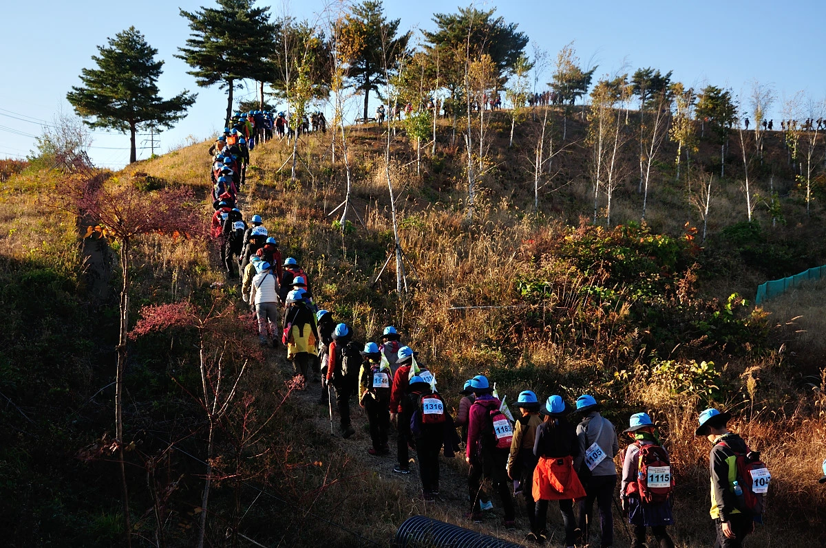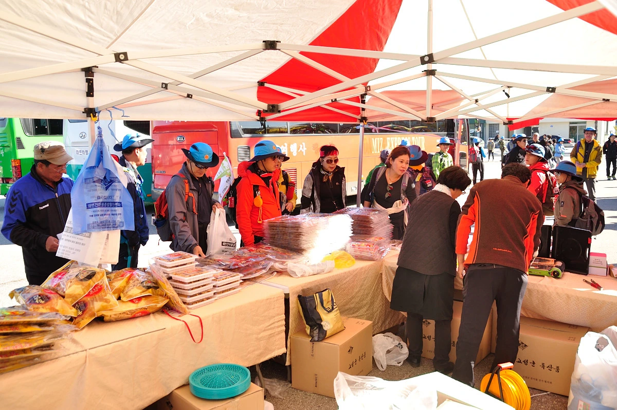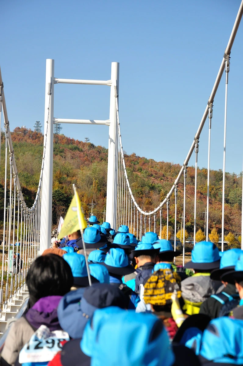 버스 주차장 한 켠에서 행사를 시작한다. 짧고 간결하게 주최자측에서 안내 인사를 건네고 오늘 걸어갈 코스에 대해 이야기를 들려 준다. 주변에는 야광빛 조끼를 입은 안내요원들이 늘어서 있다. 버스를 타고 온 사람들은 대부분이 걷기동호회에서 모집하여 참석한 인원처럼 보였다. 익숙한 동호회 패찰도 보였다. 모두가 걷기를 즐기는 사람들이니 오늘같은 행사에는 적합한 참여자인지도 모르겠다. 그래서 인지 참석한 사람들의 얼굴에는 가벼운 흥분감과 즐거움을 담은 미소가 번지고 있었다.
