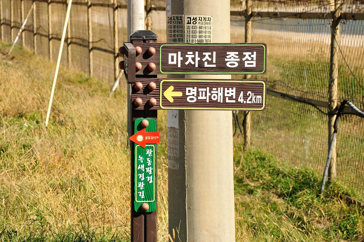 가을 걷기축제 기간 마지막에 선택한 길은 해파랑길 고성구간이다. 전체 50개 코스 중 마지막 코스이자 더이상 동해안을 따라 올라 갈 수 없는 가장 끝까지 가는 길이 50번째 코스이다. 원래는 재진안내소부터는 차량을 타고 통일전망대까지 가야하는 구간이지만, 이번에는 직접 걸어서 재진안내소를 지나 민통선 안쪽으로 걸어 갈 수 있다고 하여 잔뜩 기대되는 구간이기도 하다. DMZ존이라고 해서 별다른 것이 없겠지만 말이 주는 어감때문인지 신비에 쌓인 길로 접어드는 기쁨을 누릴 수 있을거란 즐거움을 안겨주었다.