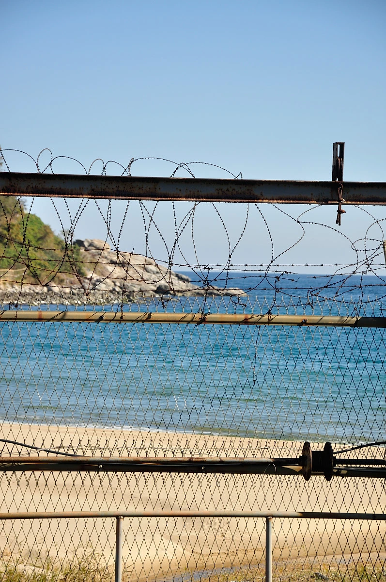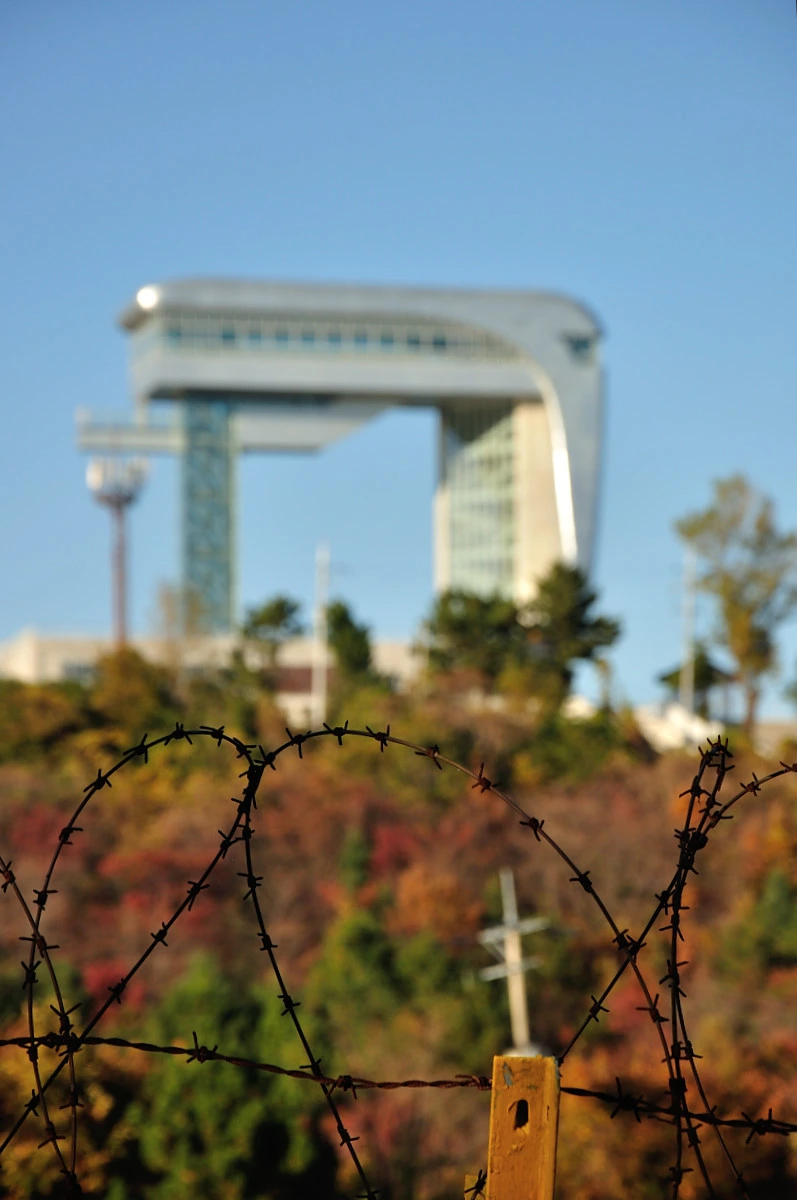 도로를 따라 1km 정도 걸으니 낮은 산으로 접어 든다. 도로 옆은 동해의 짙푸른 바다가 펼쳐져 있지만 그 앞을 가로막는 것은 철책선이였다. 북한과 오가며 평화를 바라며 준비하고 있지만 아직도 북한이 가까운 이곳은 평화가 보이지 않은 얼어붙은 이국의 장소처럼 느껴졌다. 얼마나 더 시간이 지나야 녹슨 철책선이 사라질까?