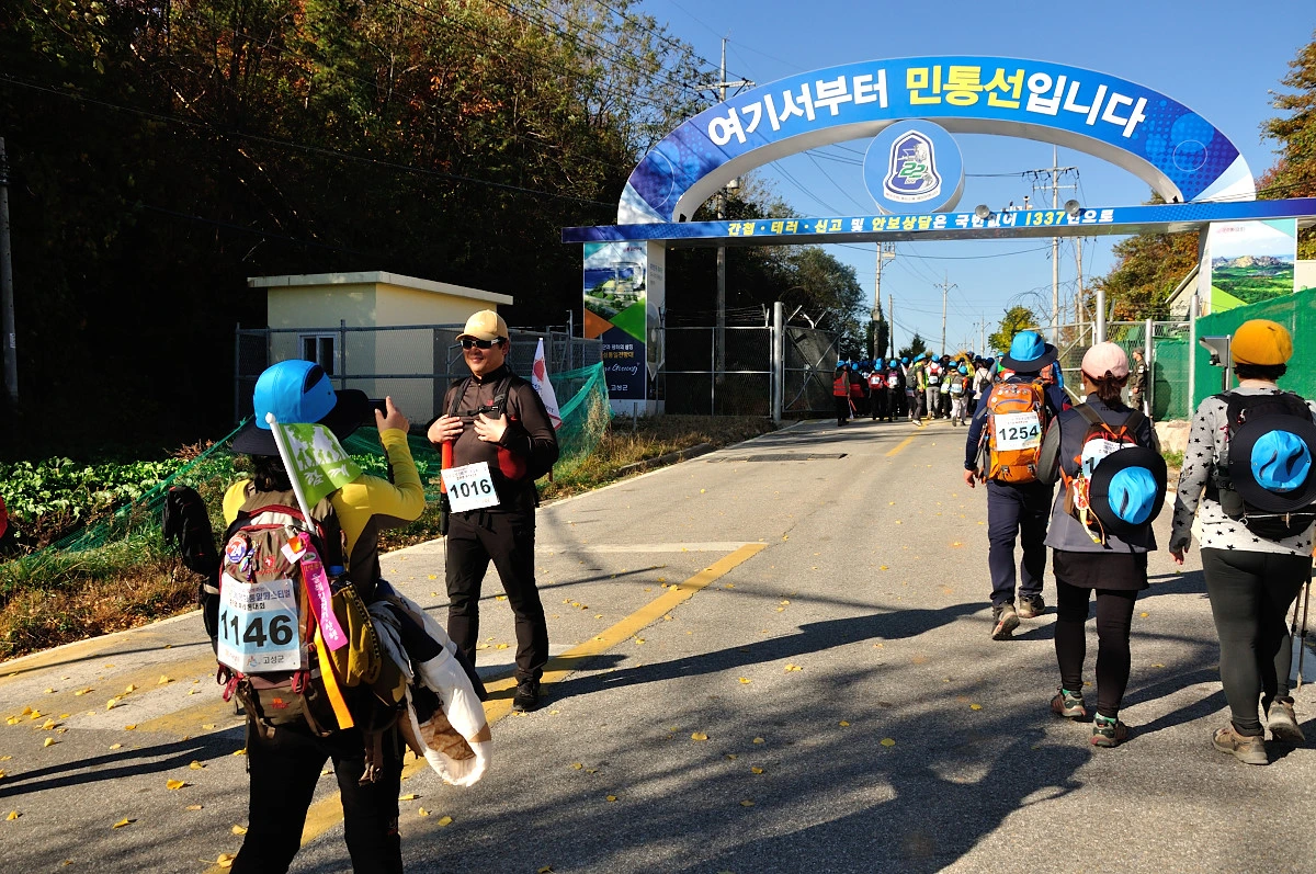 식사도 하고 휴식을 취하고 나니 후반전 걷기가 남아 있다. 이제부터는 민통선 안쪽으로 걸어야 한다고 한다. 그곳은 사진촬영도 할 수 없고, 원래는 차를 이용하여 통일전망대까지 가야하는 구간인데 이번 행사를 위해 걸어서 갈 수 있도록 군부대에서 배려를 해주었다고 한다.