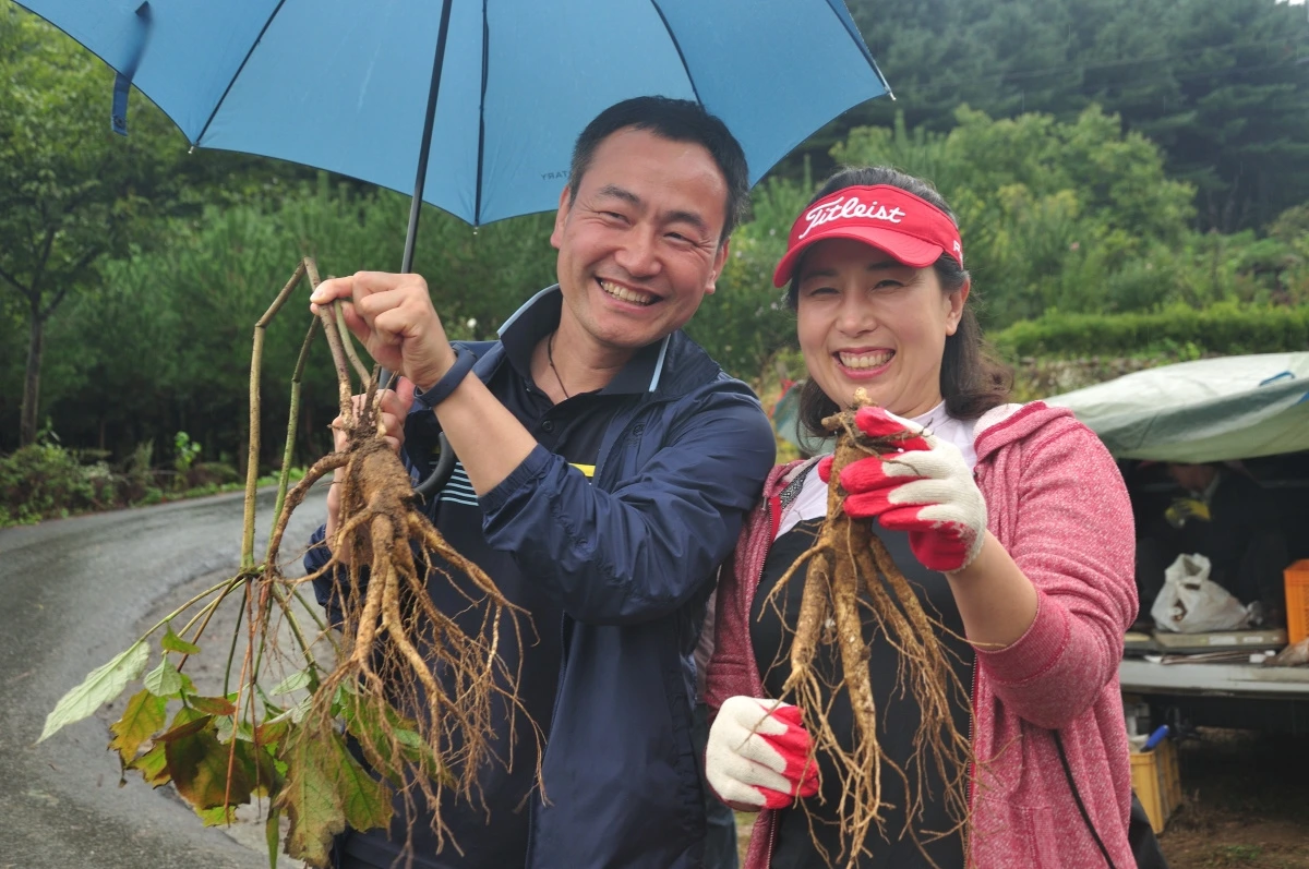 본격적으로 인삼 캐기 체험이 시작하면서 사람들의 모습은 더욱 웃음이 만연했다. 처음 캐보는 인삼인데도 구슬같은 땀을 닦아내며 땅을 파헤치는것이 힘든데도 마냥 즐거워 한다. 그리고 인삼의 모습이 들어날때는 환호성이 들린다. 그리고 여기저기서 환호성과 기쁨에 세레모니가 연속으로 나온다. 즐거움을 만끽하는 순간이다.