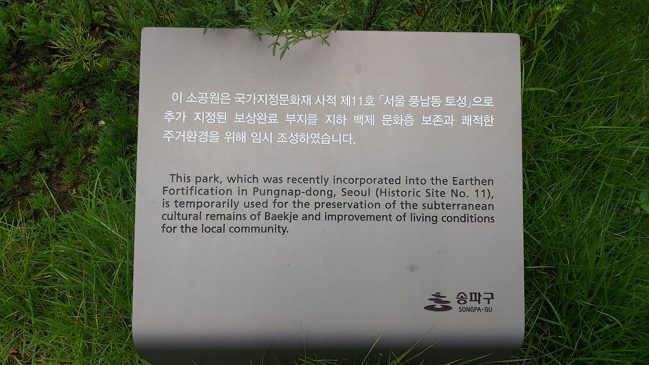 여기외에도 경당공원처럼 넓은 곳도 발굴지였다고 안내하고 있으나 그냥 공원으로 되어 있습니다. 이곳이 발굴되었을때도 마을 주민이 난입하여 석구를 부셔서 징역형을 받았다고 합니다. 그래서 풍납동은 재개발이 이루어지기 보다 조금씩 보상을 통해 부지를 확보하고 있는 상황입니다. 시간이 흘러 언젠가는 풍납토성내 마을이 사라지고 발굴 조사가 될 것입니다.
