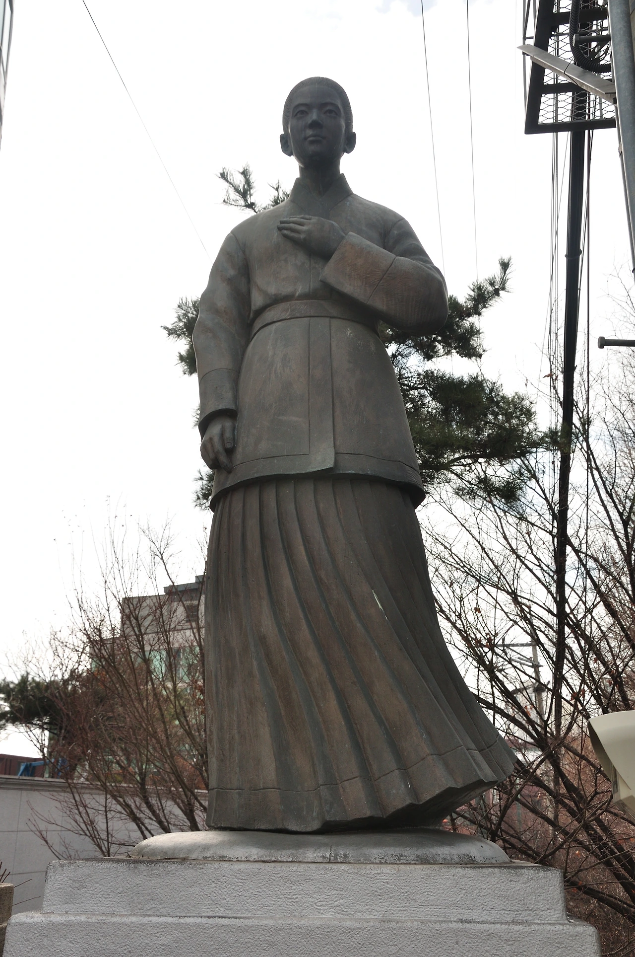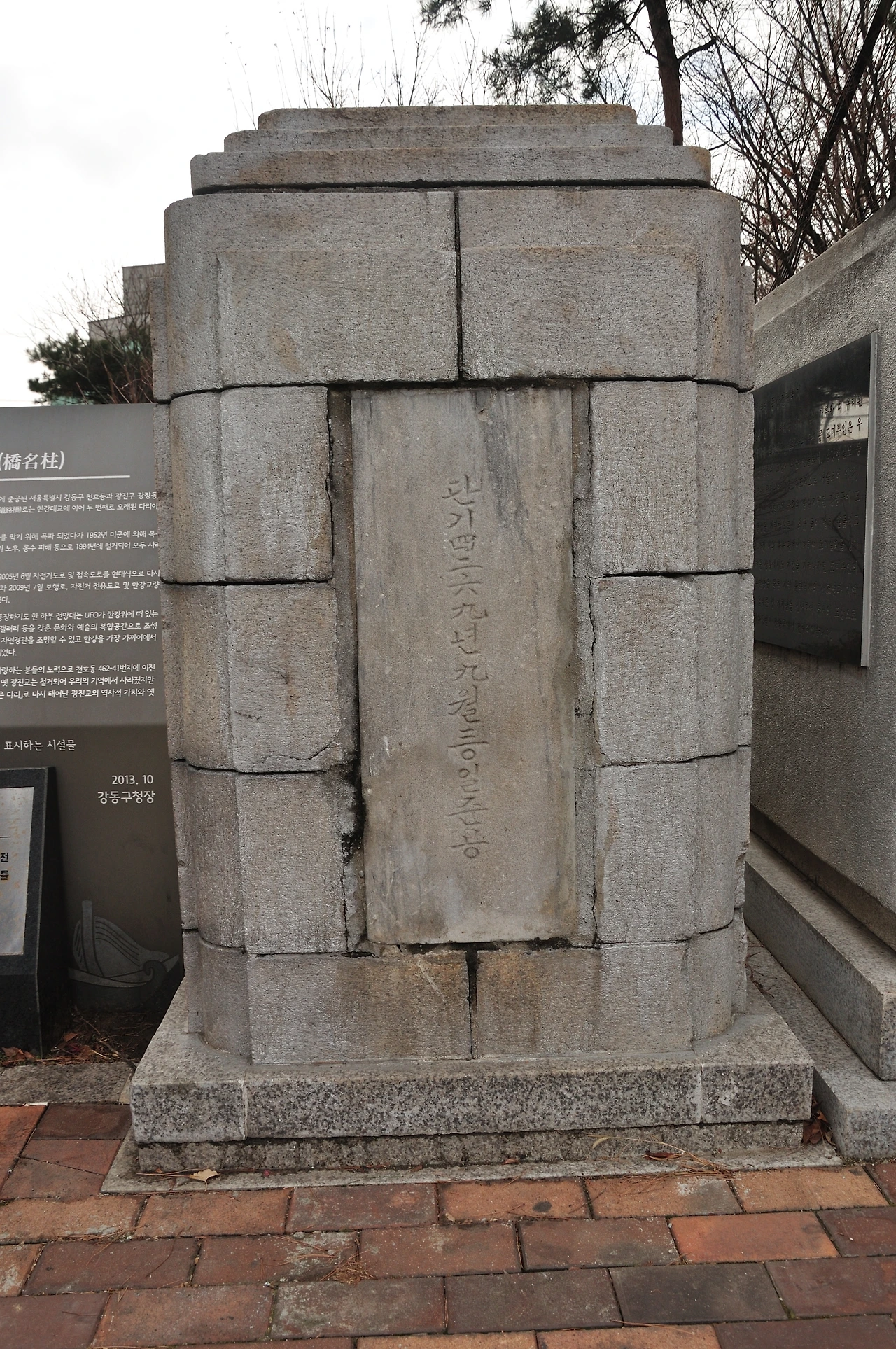 광진교 남단에 이르러 오른쪽 내리막길로 걸어내려가면 풍납토성에 이릅니다. 그전에 광진교남단에는 볼거리가 있는데, 도미부인 동상과 광진교 옛 교명주입니다. 처음 광진교가 준공되었을 당시 세워진 교명주를 되 찾아와 이곳에 설치를 해두었습니다. 광진교의 오래전 역사를 확인할 수 있는 유일한 증거인 셈입니다. 그리고 그 옆에는 백제시대 정절의 상징이였던 도미부인의 동상이 있습니다. 지금에 관점에서 보면 이런저런 구설이 나올 수 있어 그냥 지나가려 합니다.