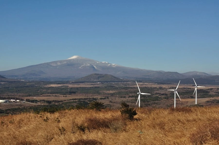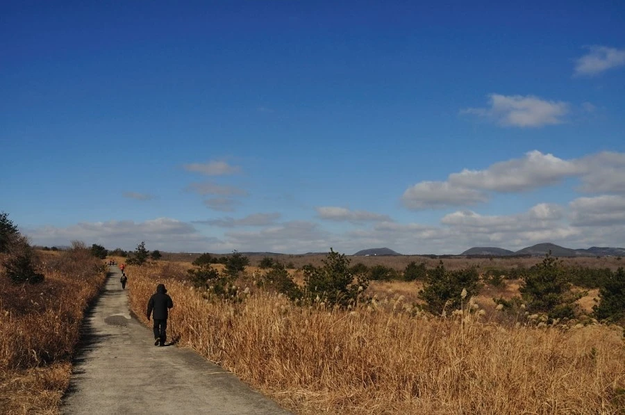 6. 제주 따라비오름을 지나 사슴이오름으로 가는길에 보였던 한라산의 눈쌓인 모습과 푸른 하늘의 풍경