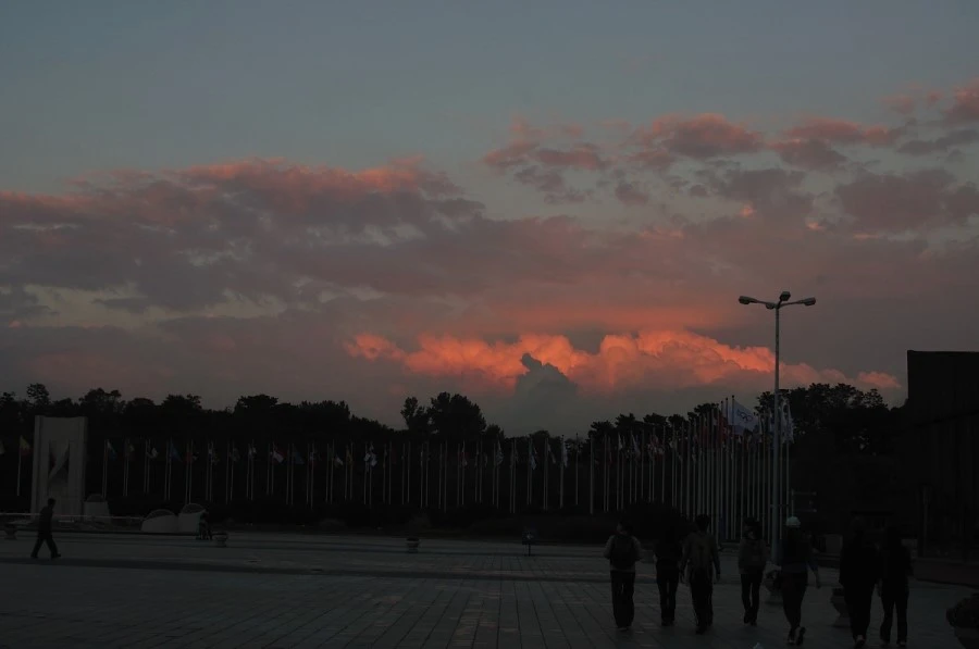 4. 해질녘 몽촌토성에 올라 붉은빛이 감돌기 시작하는 하늘의 풍경