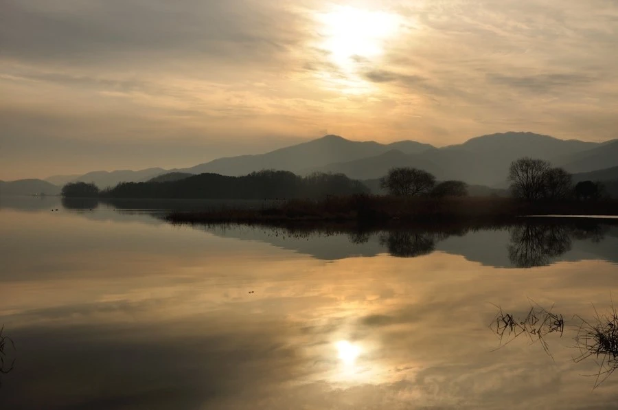 잔잔한 남한강이 한폭의 한지가 되어 하늘이 보여주는 색감을 그대로 구현해 놓는다. 자연이 만든 데깔꼬마니 그림이다.