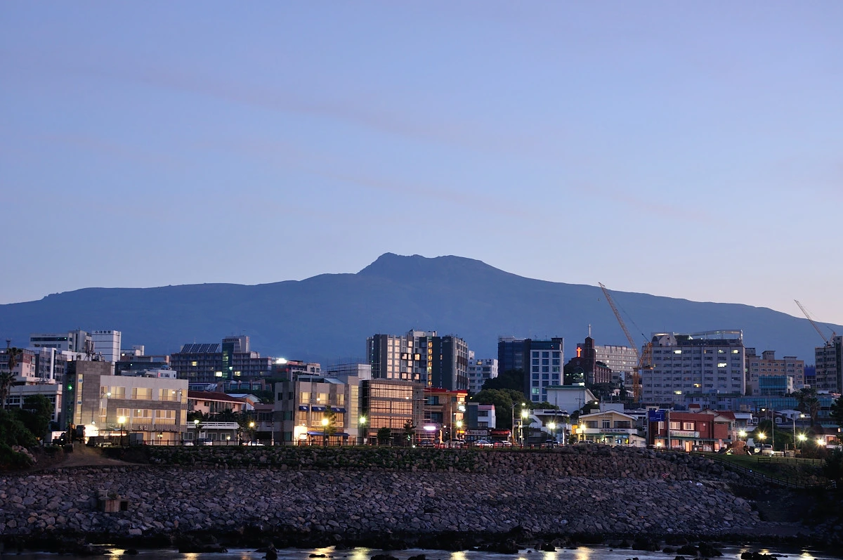일출을 찍으려고 기다리고 있는데 뒤를 돌아보니 한라산이 깨끗하게 보인다. 남벽과 함께 전체의 능선이 한 폭의 그림처럼 보인다.