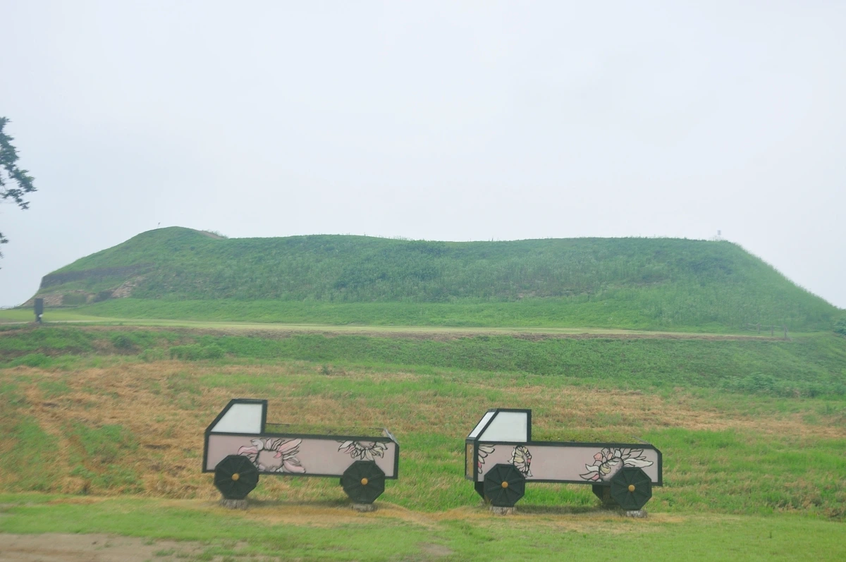 나중에 안 사실이지만 선두에 섰던 자칭 넘버2 스탭은 발바닥이 물집으로 엉망이 되어 있었다. 그런한 상황에서도 내색하지 않고 선두를 이끌었었다. 소수의 빨리걷자주의를 부르짖는 사람들 덕택에 생긴 상처일 것이다. 오늘은 익숙한 장소로 간다. 연천지역 일대를 가로질러 평화나루길 일부와 승전OP전망대를 거쳐 실제로 군인들이 경계설때 다니는 참호 길을 걷는다고 한다. 도로를 따라 걷다가 처음 만난 곳은 호로고루가 있는 유적지이다. 고구려시대 만들어진 작은 방어용 성이 임진강 앞에 있다. 토성의 터가 남아 있고 그 앞에 광개통대왕왕릉비가 모형으로 세워져 있다. 하지만 실물과 똑같이 글이 새겨져 있어 한문을 읽을줄 안다면 꽤 재미가 있을 기념비이다. 이 광개토왕비 때문에 압록강 넘어 만주 일대를 다스렸던 고구려의 역사가 여러 갈래의 가설로 분리되어 연구되고 있고 일본에 의해 비문이 변조 왜곡되는 일이 벌어져 임나일본부서의 이유를 만들기도 했다. 6m가 넘은 커다란 왕릉비는 보는 것만으로도 가슴이 화끈 거린다. 이렇게 거대한 것을 만들 수 있었던 한민족이라는 자존감이 올라오기 때문이다. 잠깐에 휴식과 호로고루성을 둘러보고 다시 발길을 옮겼다. 마냥 걷기보다 길 위에있는 유적지나 문화재를 같이 둘러보는 것은 길을 즐기는 또 다른 방법이자 체험과 감동을 줄 수 있는 방법이다. 그냥 땀나게 걷는것과는 사뭇 다른 경험을 준다.