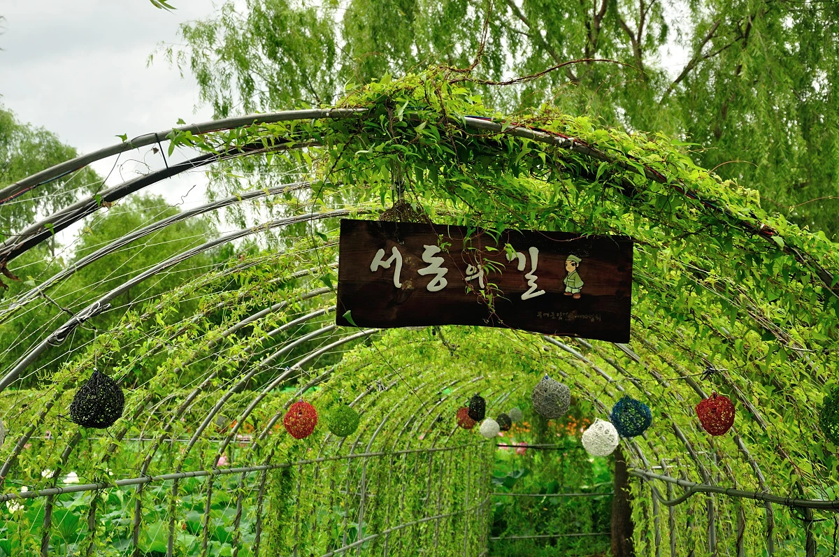 연꽃 사이로 조성한 길에는 명칭이 모두 붙어 있다. 나름 스토리텔링을 만들기 위해 작업한 것이라 하겠다.
