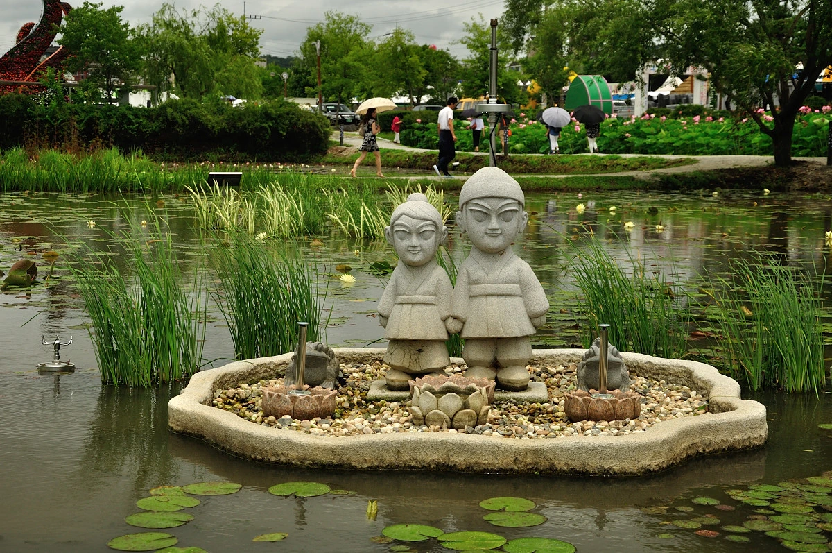 궁남지는 백제의 무왕이였던 서동과 연관이 있는 곳이다. 그러다 보니 축제이름도 '백제 서동 연꽃축제'이고 곳곳에 서동과 선화공주를 형상화한 조형물이 군데군데 있다.