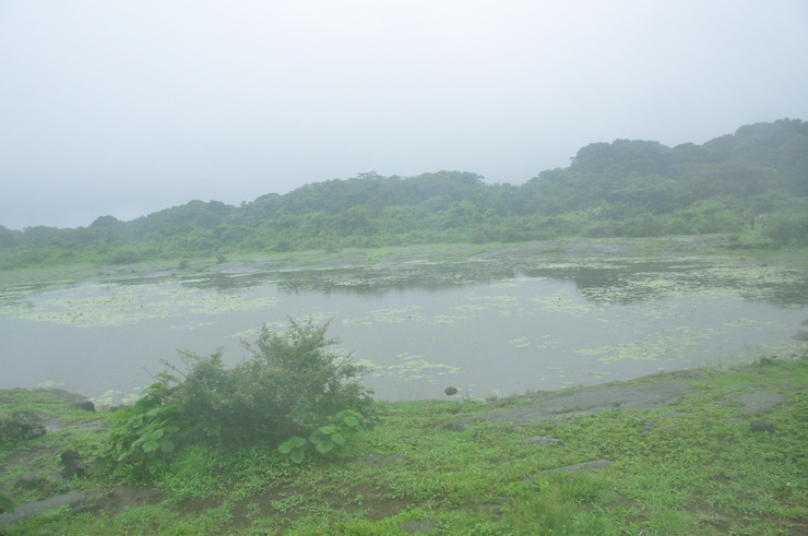 벵뒤골을 벗어나면 하늘이 보이고, 너른 분지가 나온다. 여기서 안내길을 따라가면 웃밤오름이 보이고 마지막 숲길을 지나 종착지에 도달하게 된다. 우리가 갔을때는 마지막 예약자인데다가, 날씨가 좋지않아 가이드 한 분이 안내를 도와주셨다. 더욱이 보지도 못할 암반호수까지 가보고 구경할 수 있는 기회까지 얻었다. 이길은 안내에도 없는 곳이고 정규 코스도 아니기 때문이다. 제주도의 땅은 물이 쉽게 빠지는 구조라서 하천이나 호수가 거의 없는데, 유일하게 여기는 암반으로 되어 있어, 물이 빠지지않고 사시사철 물이 고여 있는 호수라고 한다.