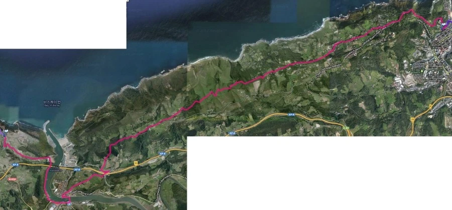 1) 캠핑장을 경유하여 해안가로 가는 코스와 마을길을 따라 zarautz로 들어가는 길이 있음.