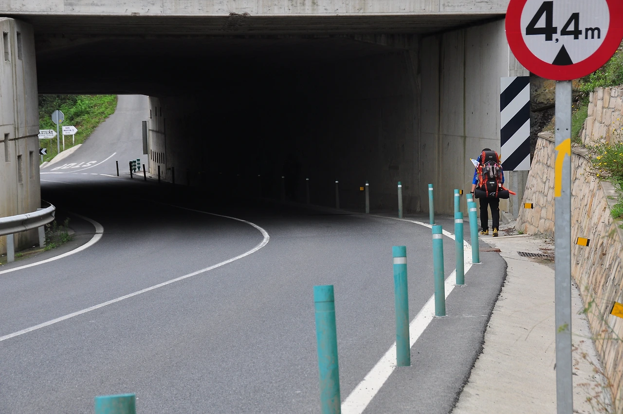숲길이나 마을길이 사이를 도로를 따라 걸어야 할때도 있다. 놀라운 것은 도로옆에 순례자를 위해 안전하게 걸을 수 있도록 가드레일과 안전시설이 설치되어 있어 차량으로 부터 완전하게 분리되어 있다는 것이다. 분명 도로변 갓길처럼 보이는데도 차량 진입을 못하도록 말뚝시설물로 순례자를 보호하고 있다.