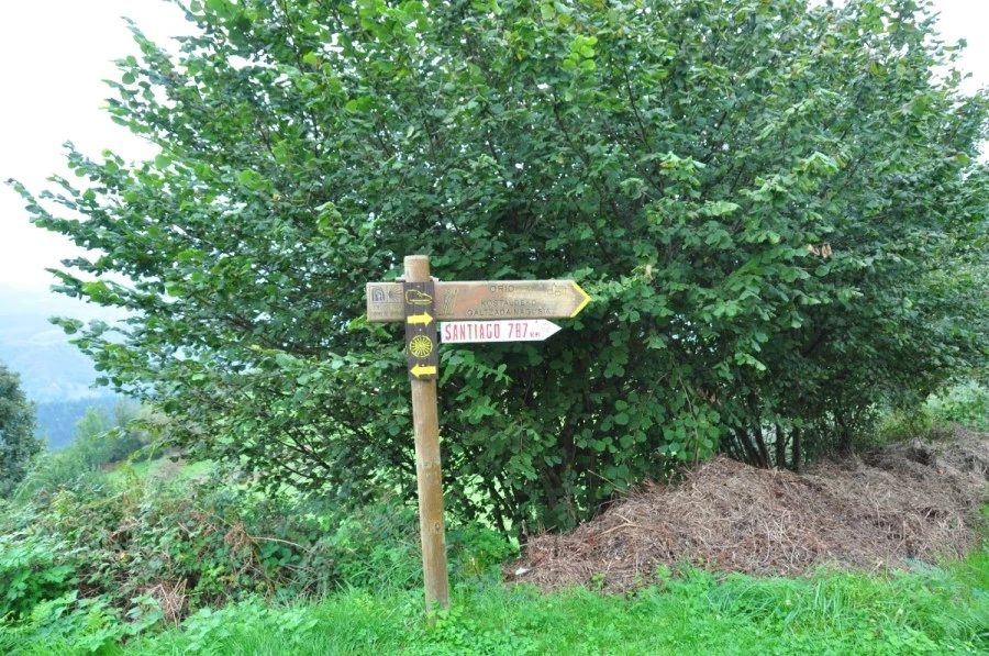 Orio 시내를 벗어나는 도로변에 갈림길 표시가 보인다. 하나는 노란색 화살표이고, 또 다른 하나는 빨간색과 흰색의 줄무늬가 있는 표시이다. 자세히 들여다 보니 'GR'이라고 옆에 쓰여져 있다. 이당시에도 'GR'이라고 표시된 길도 Camino De Santiago루트를 표시한 이정표인줄 알았다.