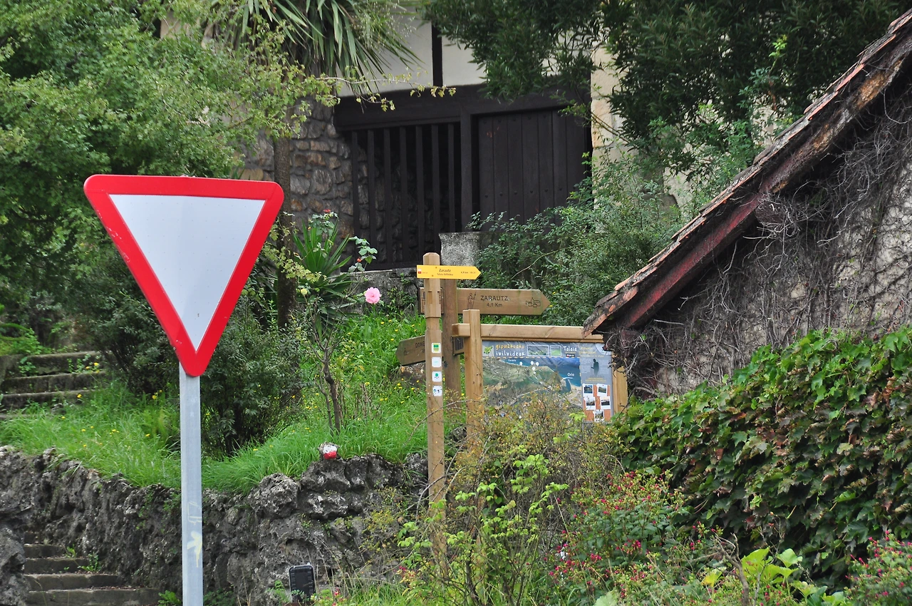 Pais Vasco 지역은 대부분 나무로 된 표시기둥이 갈림길마다 세워져 있고, 거기에 노란색 화살표가 추가로 그려져 있기도 한다.