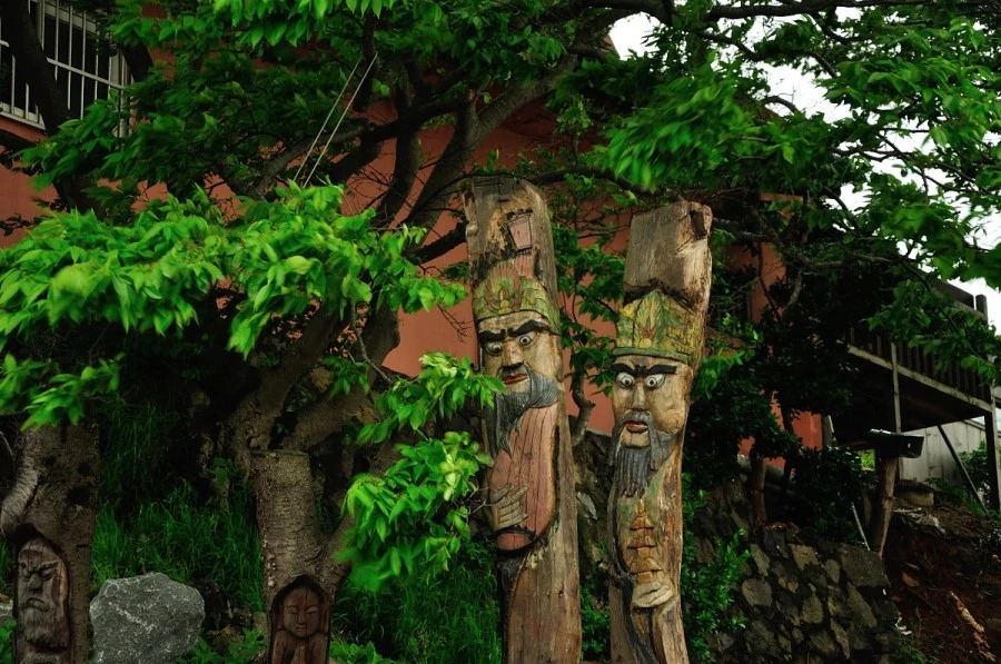 간월암 입구에 서있는 장승 들... 일반적인 장승의 모습과는 사뭇다르다. 사천왕상을 장승처럼 표현한듯 하다.