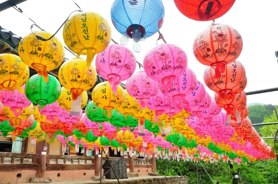 개심사에 먼저 보이는것은 연등이다. 앞마당을 가득 메운 연등이 줄줄이 늘어서 있다.