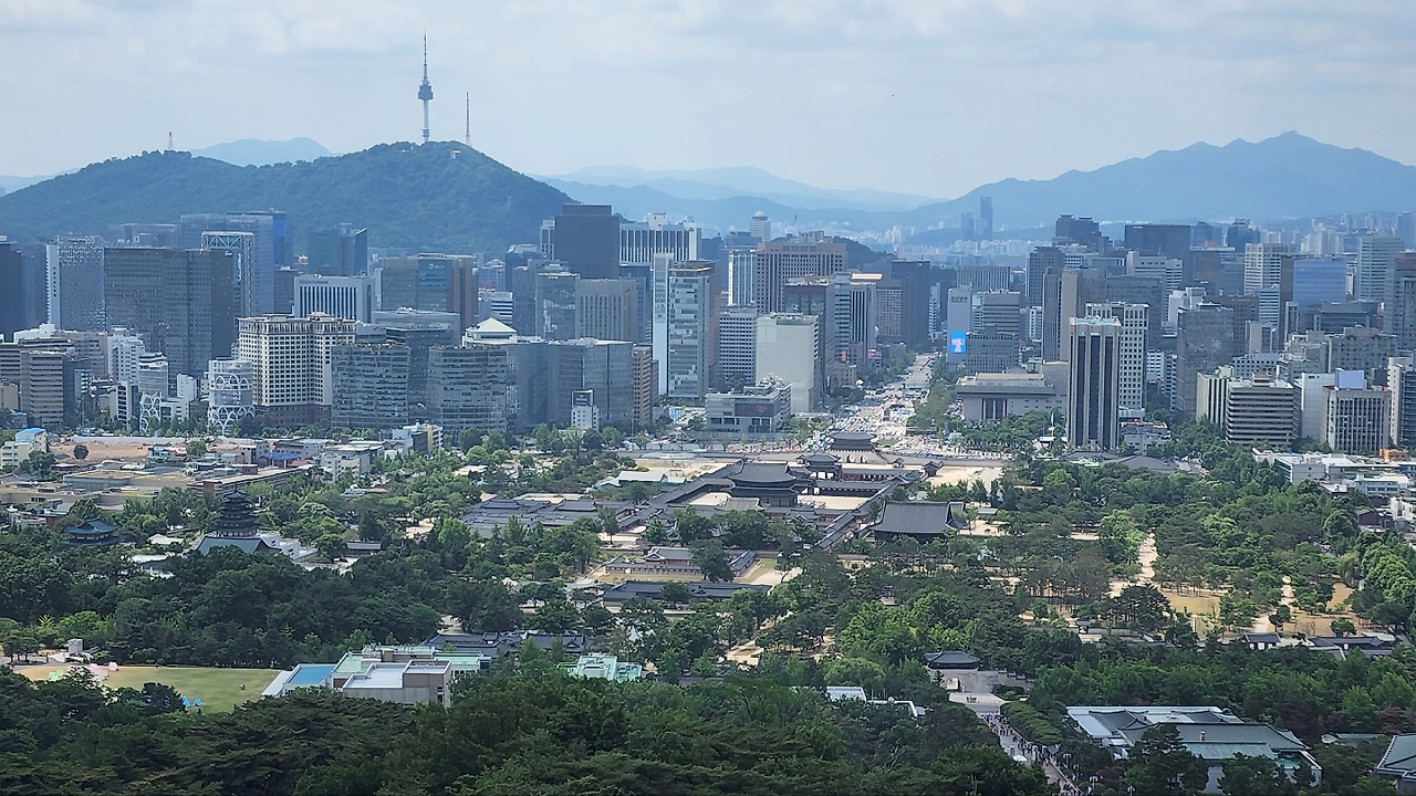서울중심에는 한양도성이 있고 가운데에는 경복궁이 백악산을 등지고 자리하고 있다. 그리고 문화해설사들은 경복궁의 자리배치를 말할때 남쪽으로는 남산을 마주하고 뒤편으로는 백악산(북악산)을 면하고 있다고 한다. 나또한 그렇게 들었고 배웠었다. 그러다가 건축가가 말하는 한양의 궁궐배치에 대한 강의를 들은 적이 있는데 내가 알던 상식을 깨뜨려버렸다. 경복궁과 광화문거리를 일직선으로 두면 남산을 비켜가 남쪽으로는 관악산에 직면한다는 것이다. 설마했었다. 그러나 남측산책로가 개발되면서 경복궁 뒷편에서 궁궐을 내려다볼 기회가 생겼다. 그리고 찬찬히 훑으며 바라보니 경복궁과 광화문의 축은 우리가 알던 그 축선에 있지 않았다.