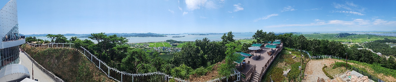 화개 정원에 있는 전망대가 다른 곳보다 좋은 점은 교동도라는 섬안에 있기 때문에 사방이 모두 바다로인해 트여 있다. 그래서 어느 방향으로 보나 아름답고 탁트인 개방감이 매우 좋은 곳이다. 전망대 정면은 한강의 끝인 조강과 함께 북녘땅이 보이고 반대편에는 작은 섬들이 바다위에 떠있는데 석모도, 불음도 등 섬 군락지 풍경이 눈에 들어온다. 그래서 전망대의 어느 위치에서 보느냐에 따라 풍경이 수시로 바뀐다.