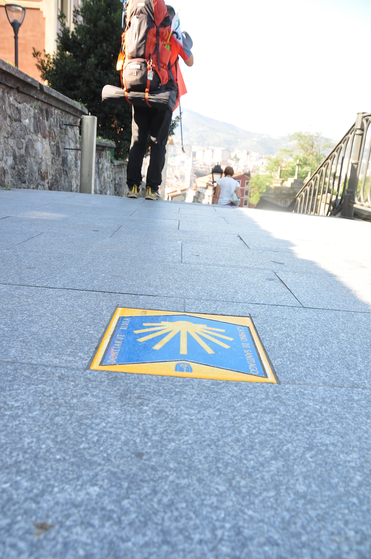 지난번 San Sebastian 도심을 지나갈때는 노란색 화살표를 찾지못해 대충 해안가를 따라 걸었던 기억이 있어 이번에는 제대로 길을 찾을 수 있을지 내심 불안해 졌다. 공원에서 계단을 내려오면서부터 걱정은 사라지기 시작했다. 생각보다 자세히 인도와 주변 벤치나 벽면을 찾아보면 노란색 화살표가 꾸준히 나타났기 때문이다.