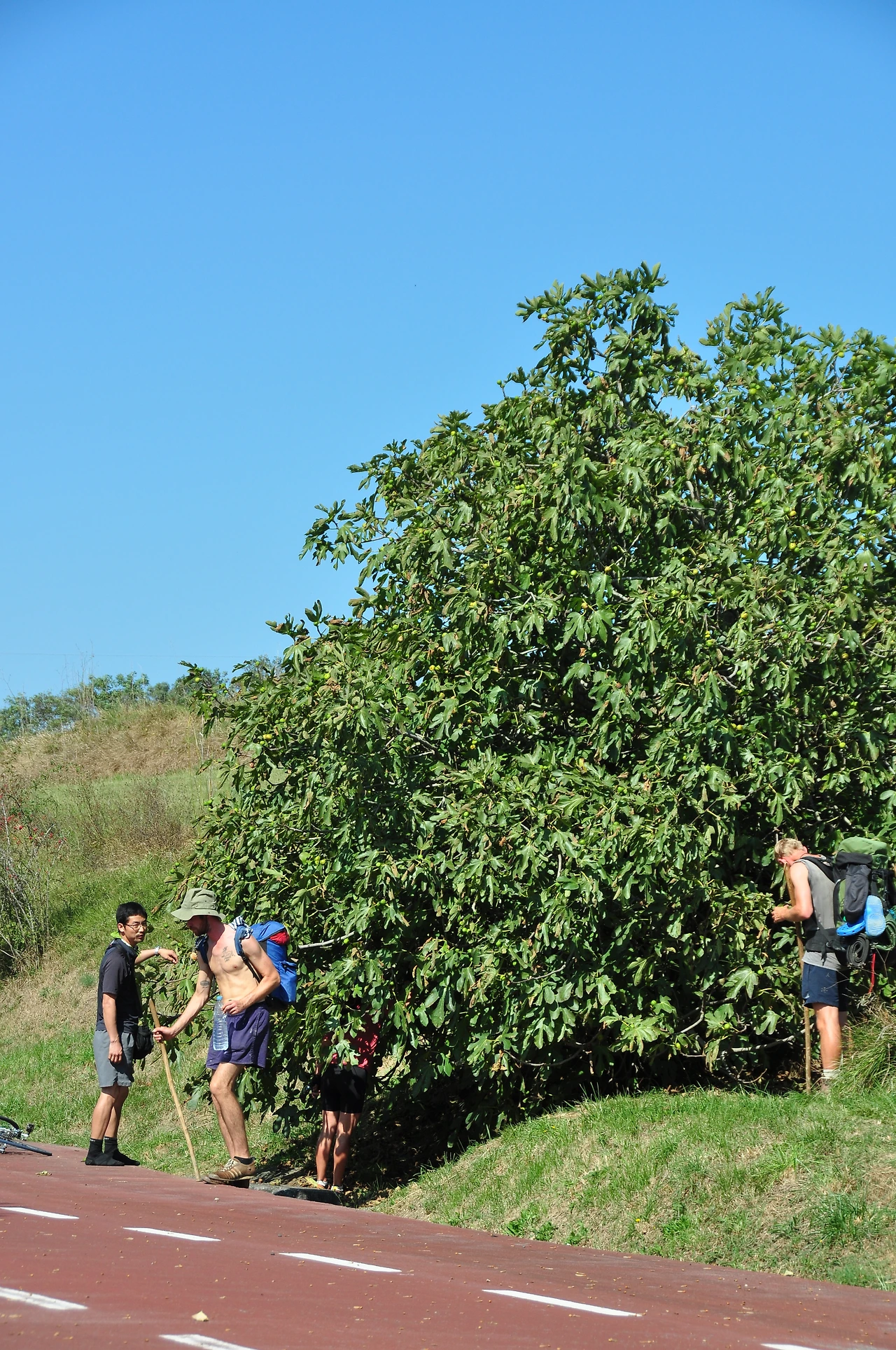 가는 길목 어느 나무에 사람들이 붙어서 연신 무언가를 찾고 있다. 궁금해서 다가가 보니 무화과 나무 열매를 연신 순례자들이 따먹고 있었다. 지나가던 자전거 여행자도 가던 길을 멈추고 우리쪽에 합류하여 달디 단 무화과열매를 맛보고 있었다. 쉽게 과일을 접할 수 없는 우리같은 사람들에게 도로에 있는 과실 수는 공짜로 맛볼 수 있는 과일이기도 하다.