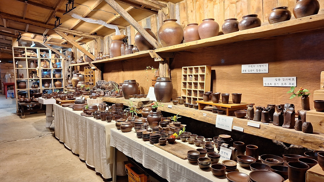 제주 도예원은 상품전시관과 박물관이 나뉘어져 있다. 오른쪽 건물에는 제작한 도기를 전시하고 신문과 해외 언론의 내용을 전해주는 내용이 전시되어 있고, 좀더 안쪽에 있는 낮은 건물에는 이곳에서 만들어진 제주도기가 가득히 진열되어 있다. 찬찬히 둘러보며 구매할 수도 있다. 물허벅부터 찻잔까지 다양한 생활속에서 사용할 수 있는 도기가 많이 진열되어 있다. 제주 도기의 특징 중 하나가 비슷한 색감을 나타내지만 모두 동일하지 않다는 점이다. 조금씩 다른 듯 같은 계열의 색감을 가지고 있는 것이 제주 도기의 특징이기도 하며 유약을 바르지 않았음에도 생활용기로 쓸 수 있는 친환경 제품인 셈이다.
