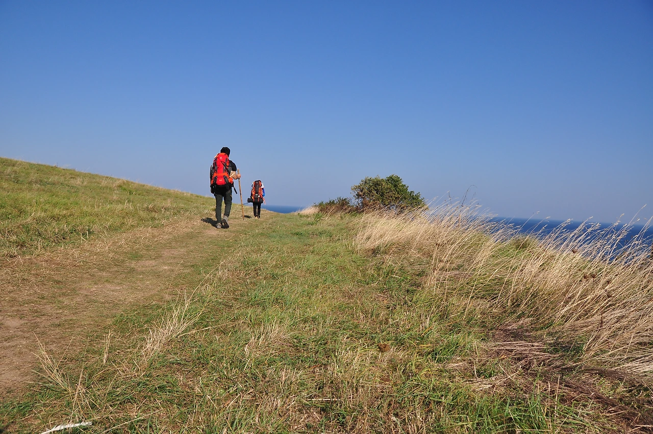 절벽옆 구릉을 따라 이어진 순례길은 너무나 조용하고 한적하다. 언덕을 넘어설 무렵, 저 멀리 도시의 모습이 보이기 시작했다. 오늘에 종착지점인 Castro Urdiales 이다. 그리고 바로 절벽 건너편에 한 무리에 사람들이 보인다. 외국인 순례자들이다. 우리만 있을 줄 알았는데 다른 순례자를 멀리서라도 보니 반가울 따름이다.