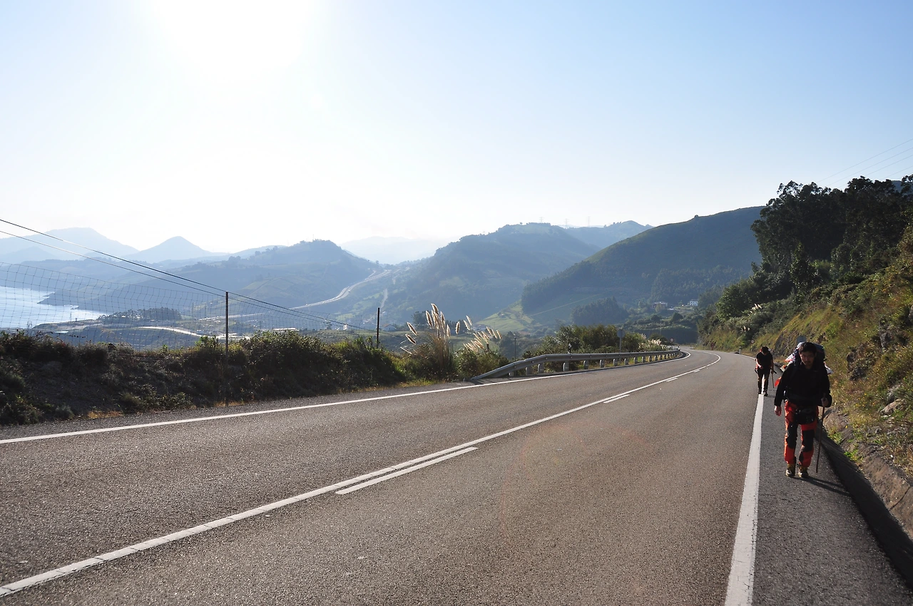 다시 산길을 넘어서니 절벽옆을 따라가는 화살표가 눈에 들어온다. 낮게 깔린 갈색빛 풀잎 사이로 걷는 느낌이 좋은듯 쓸쓸하기만 하다. 며칠 동안 순례자들을 본 적이 없다. 그저 우리끼리만 북쪽길에 남아 있는 것처럼 느껴졌다.