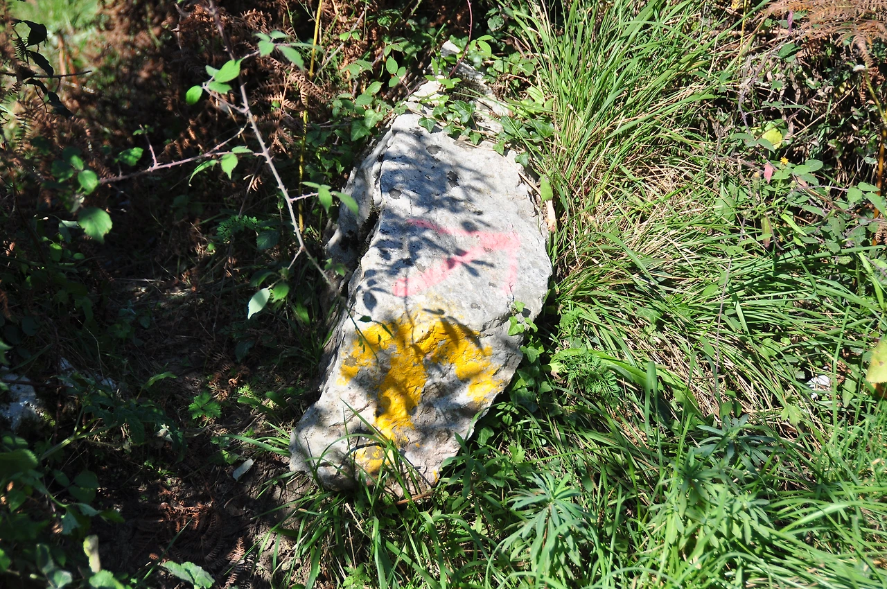 순례길을 걷다보면 독특한 이정표를 보게된다. 마을 주민들이 순례자를 돕기위해 부가적으로 설치하기도 한다고 한다. 그러다 보니 바위위에 나무위에 그리거나 화살표를 만들어 부착하기도 한다. 우리나라 사람들이 봤다면 자연파괴(?)라고 호들갑을 떨었을텐데, 여기서는 그저 흔한 풍경이다.