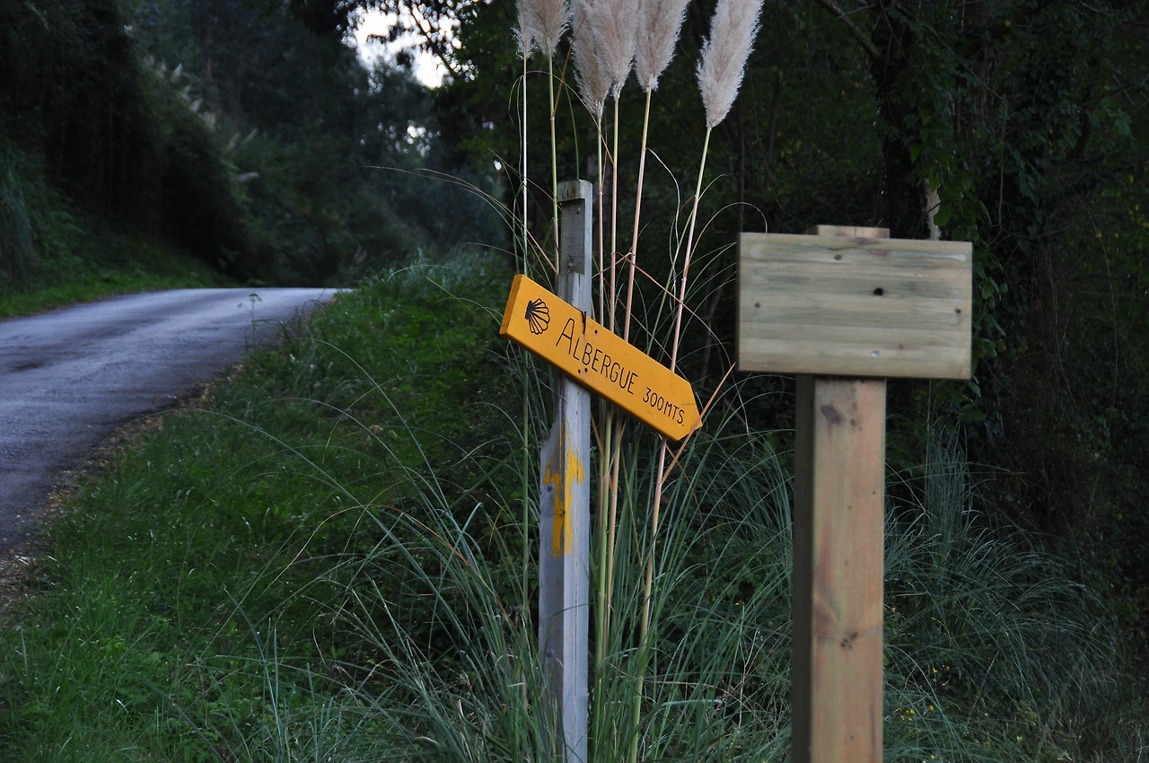 알베르게를 나와 왼쪽으로 길을 잡고 언덕을 따라 올라간다. 언덕을 넘으니 작은 마을이 나타나고 길 곳곳에 푸른색 화살표와 조가비가 그려진 이정표가 벽면에 붙어 있었다. 기본적인 형태의 이정표시석이 있지만 마을마다 색다른 모양새를 가진 이정표도 눈에 뜨인다.