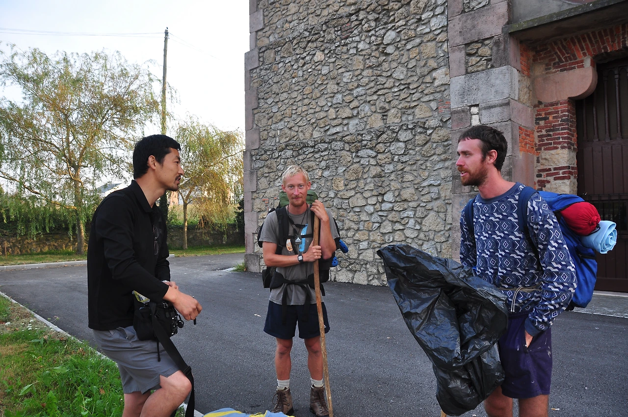 이제는 순례길을 걷다가 익숙한 얼굴들을 자주 보게 된다. 시작하는 날짜가 같으면 대부분 비슷한 일정으로 움직이기 때문에 조우하는 경우가 많다. 어느 교회에서 만난 미국인 청년 두 명은 전에도 잠깐 만났었다. 교회에서 비박을 하고 다시 출발하려고 준비하는 과정에 우리와 만난것이다. 아침인사와 몇 마디 인사를 나누고 우리가 만들었던 주먹밥을 나눠 주었다.