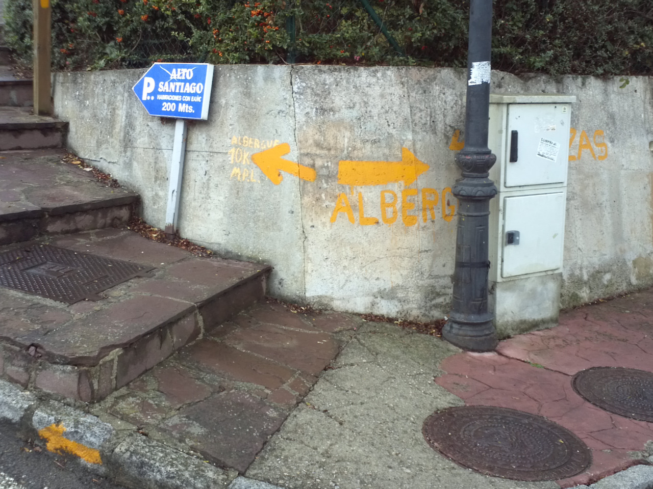 알베르게를 나와 아래쪽 계단을 내려오면서 순간 화살표가 보이지 않아 한참을 헤맸다. 도심 중앙으로 들어가 여기저기 기웃거리다가 결국 왔던길로 되돌아 나왔다.